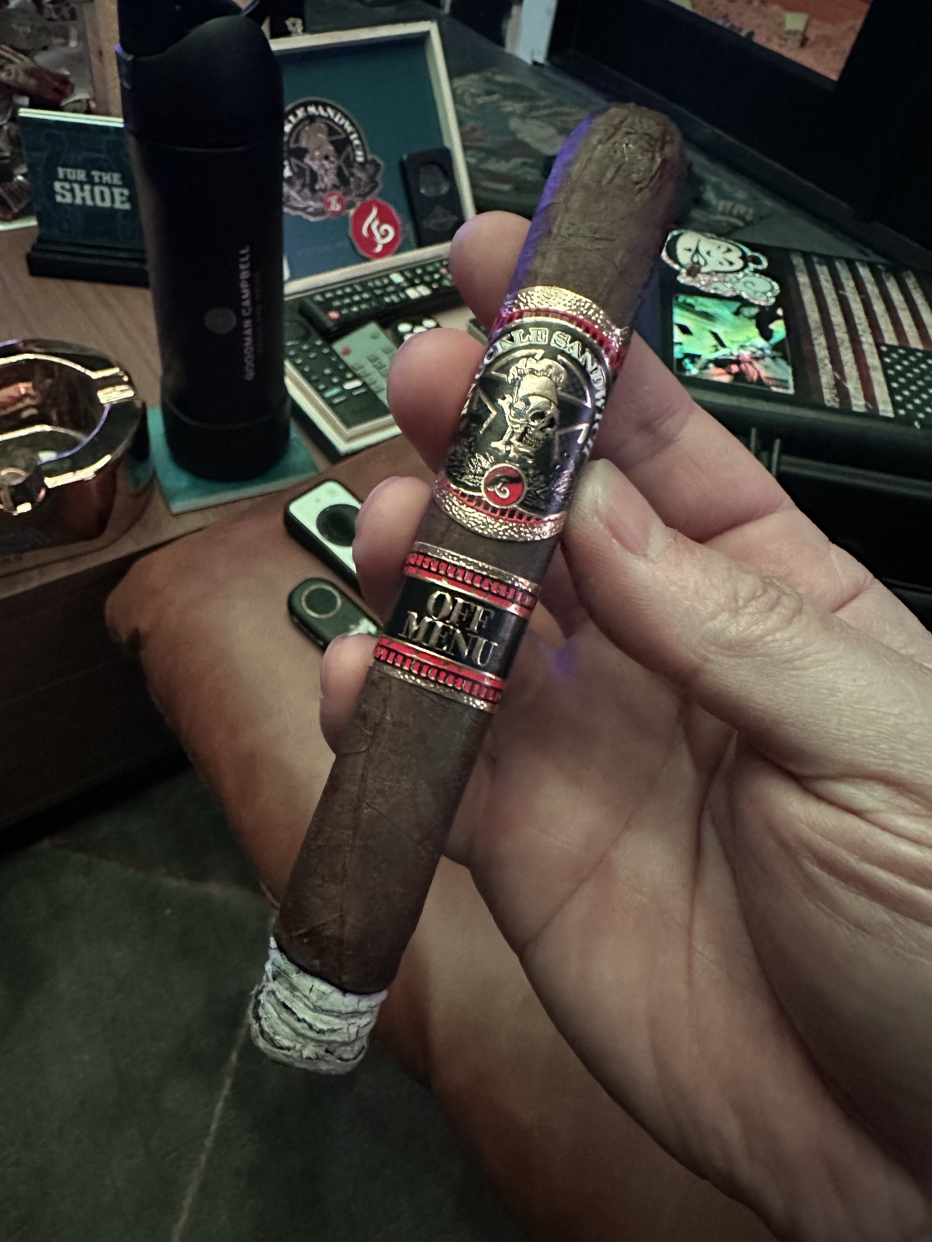 Espinosa shifted from their Murcielago line (which they'd used in 2023 and 2024) to Knuckle Sandwich for their 2025 TAA exclusive, debuting the Knuckle Sandwich Off Menu TAA 2025 Exclusive for retailers that are members of the Tobacconists’ Association of America (TAA). The cigars were rolled in a 6" x 54 box-pressed toro format, featuring a Pennsylvania Broadleaf wrapper and an all-Nicaraguan interior blend. The release was limited to 1,250 boxes of 20 cigars.