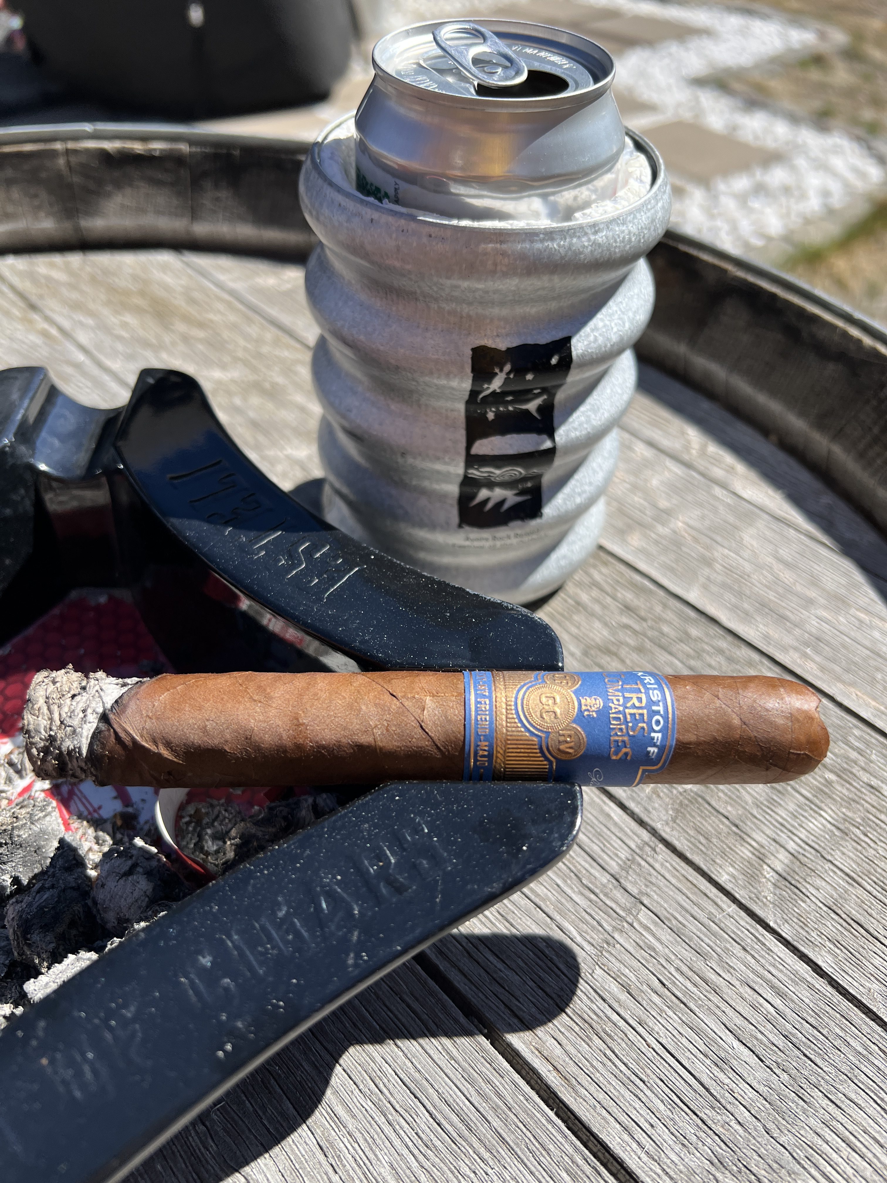 Kristoff Tres Compadres commemorates two friends of owner Kristoff owner, Glen Case, both of whom passed away in close succession. Together, the three friends were dubbed the "three amigos" (or "tres compadres"), and the cigar was made in their honor. Differing from most Kristoff cigars, the Tres Compadres is crafted using a Nicaraguan puro recipe (despite being rolled in the DR). This includes a Nicaraguan Habano wrapper, a Nicaraguan binder from the Condega growing region, and fillers from the Jalapa, Estelí, and Condega regions of Nicaragua.