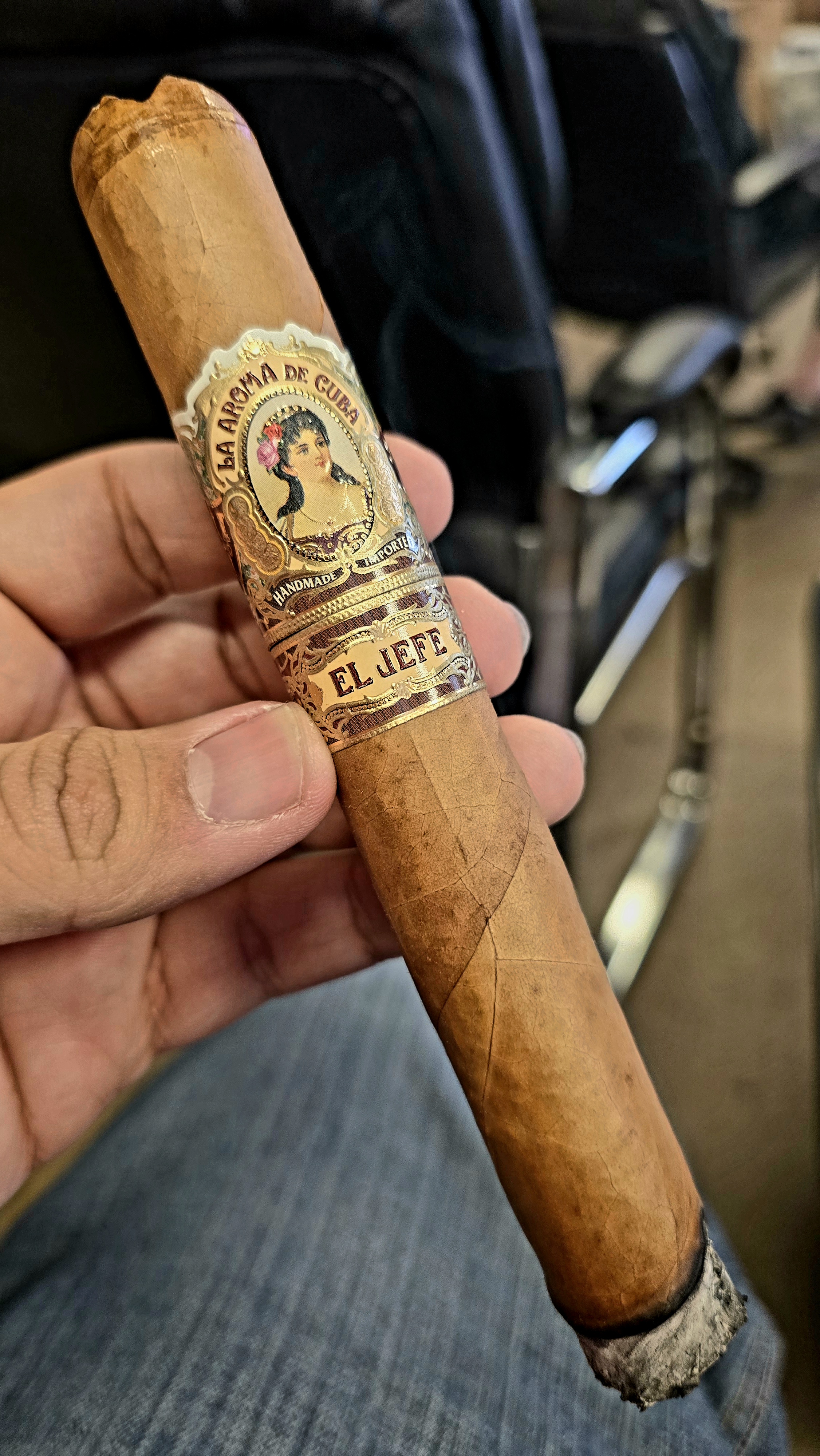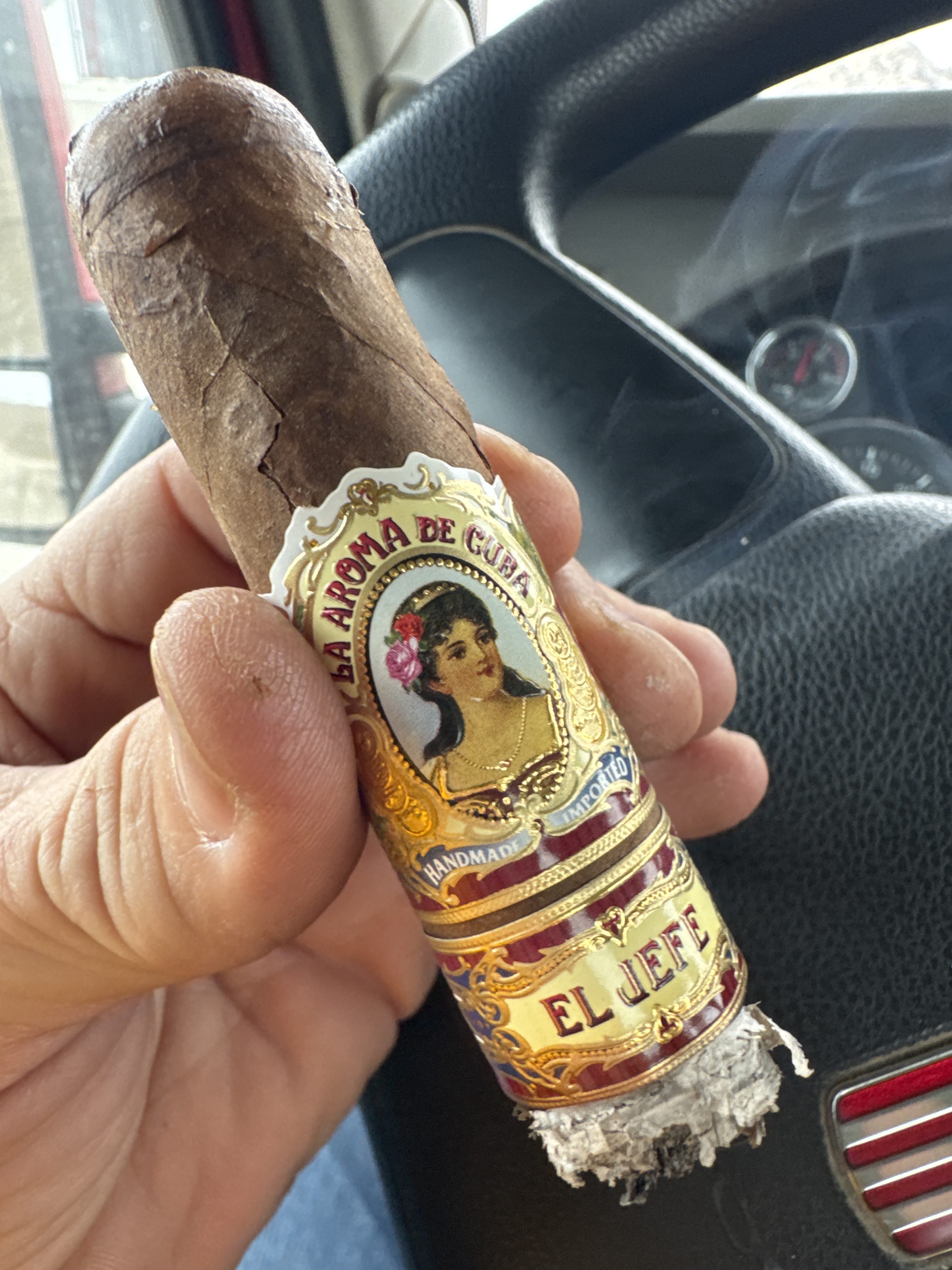 El Jefe translates to The Boss, and has long represented the largest size in some of La Aroma de Cuba's lines. Aside from the name, size, and sub-band, the cigar is the same as the conventional La Aroma de Cuba Connecticut, featuring an Ecuadorian Connecticut wrapper and all-Nicaraguan binder/fillers.
