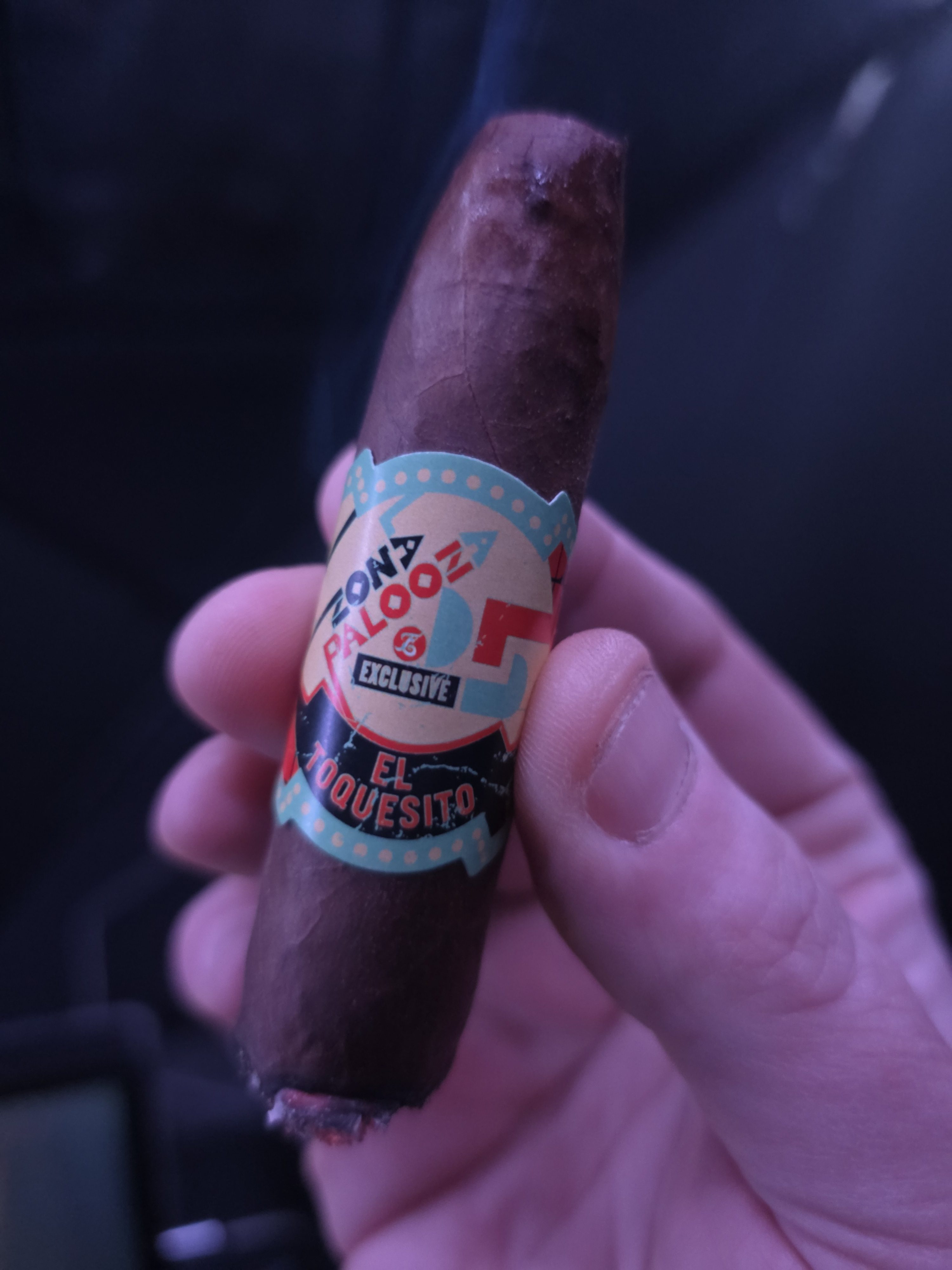 The La Zona Palooza 2025 El Toquesito cigar was exclusive to Espinosa's annual event in 2025. It was rolled in a 6½" x 52 torpedo format, featuring a Nicaraguan rosado oscuro wrapper and Nicaraguan filler.
