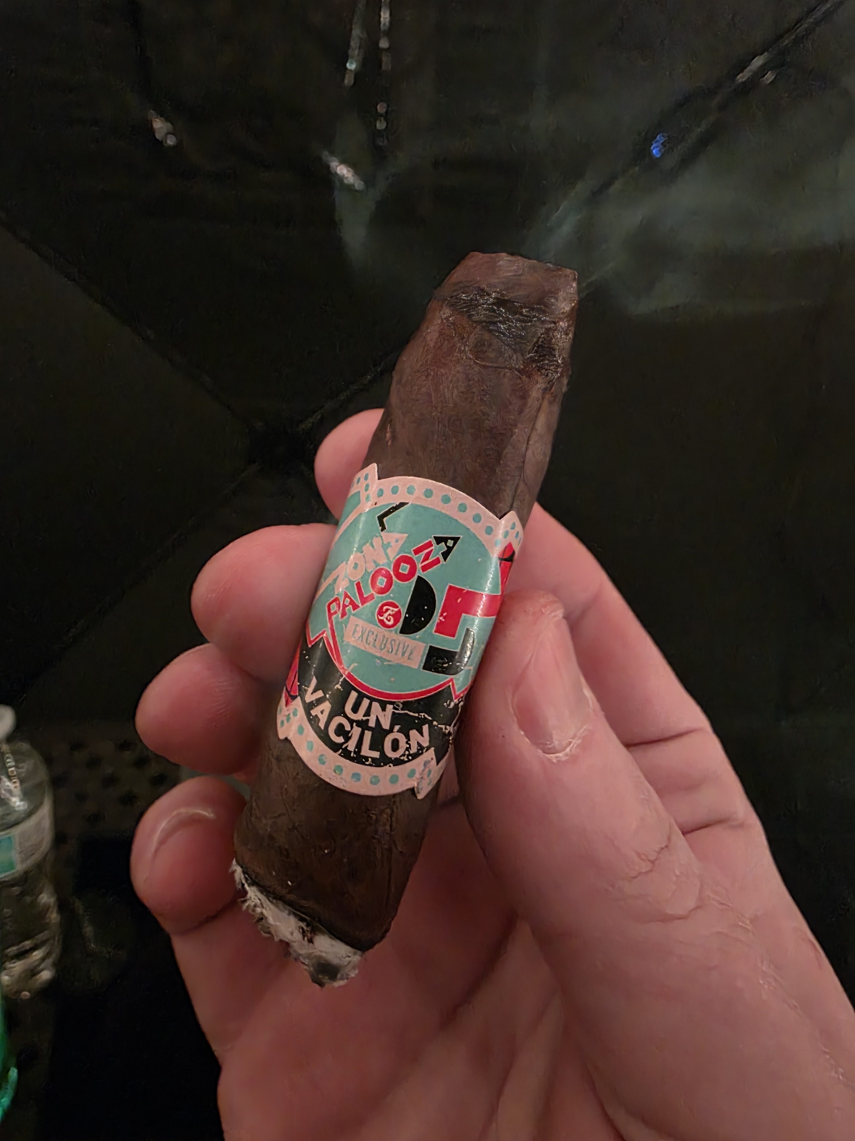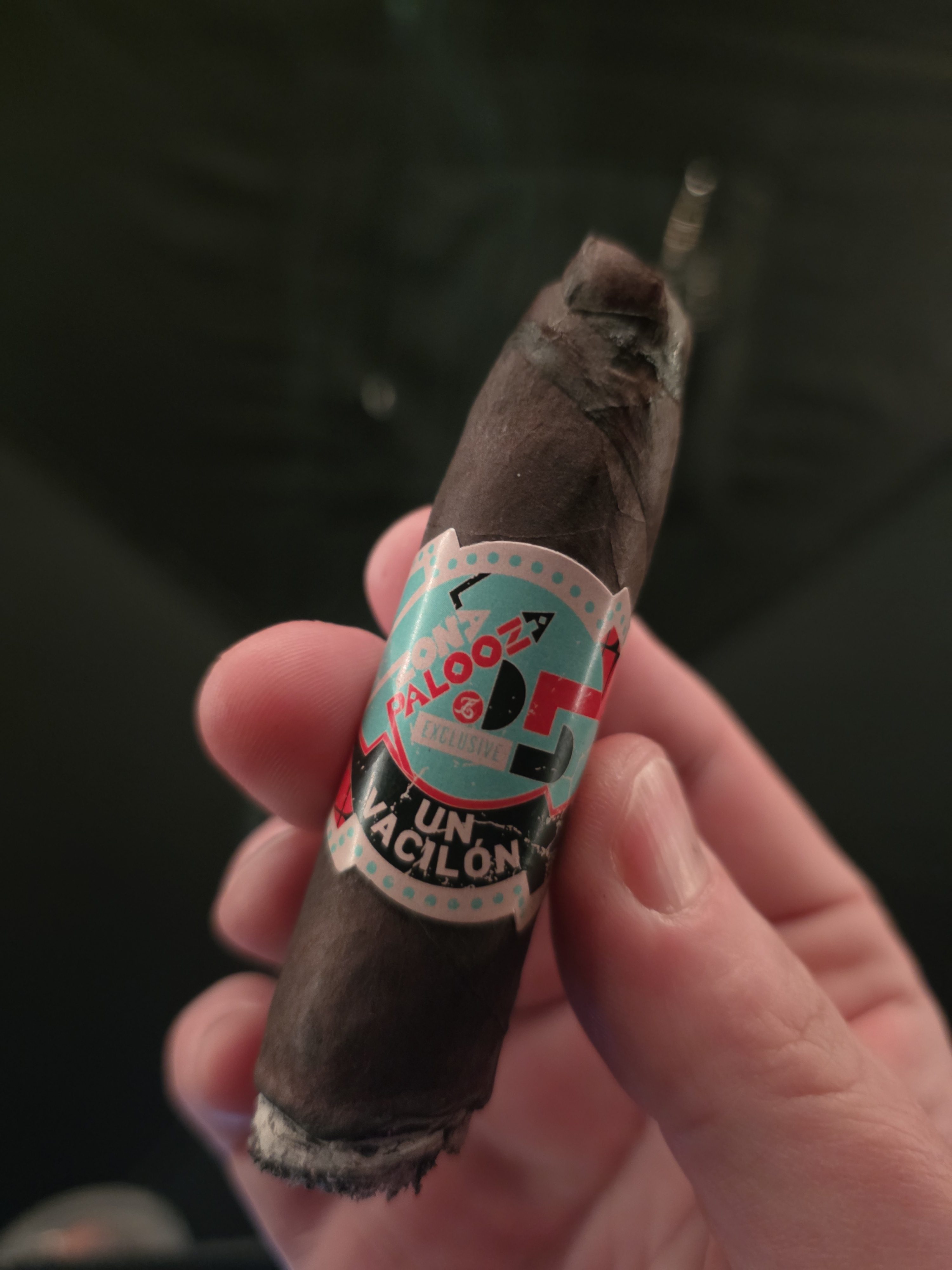 The La Zona Palooza 2025 Un Vacilón cigar was exclusive to Espinosa's annual event in 2025. It was rolled in a 5" x 52 torpedo format, featuring an Ecuadorian Habano oscuro wrapper and Nicaraguan filler.