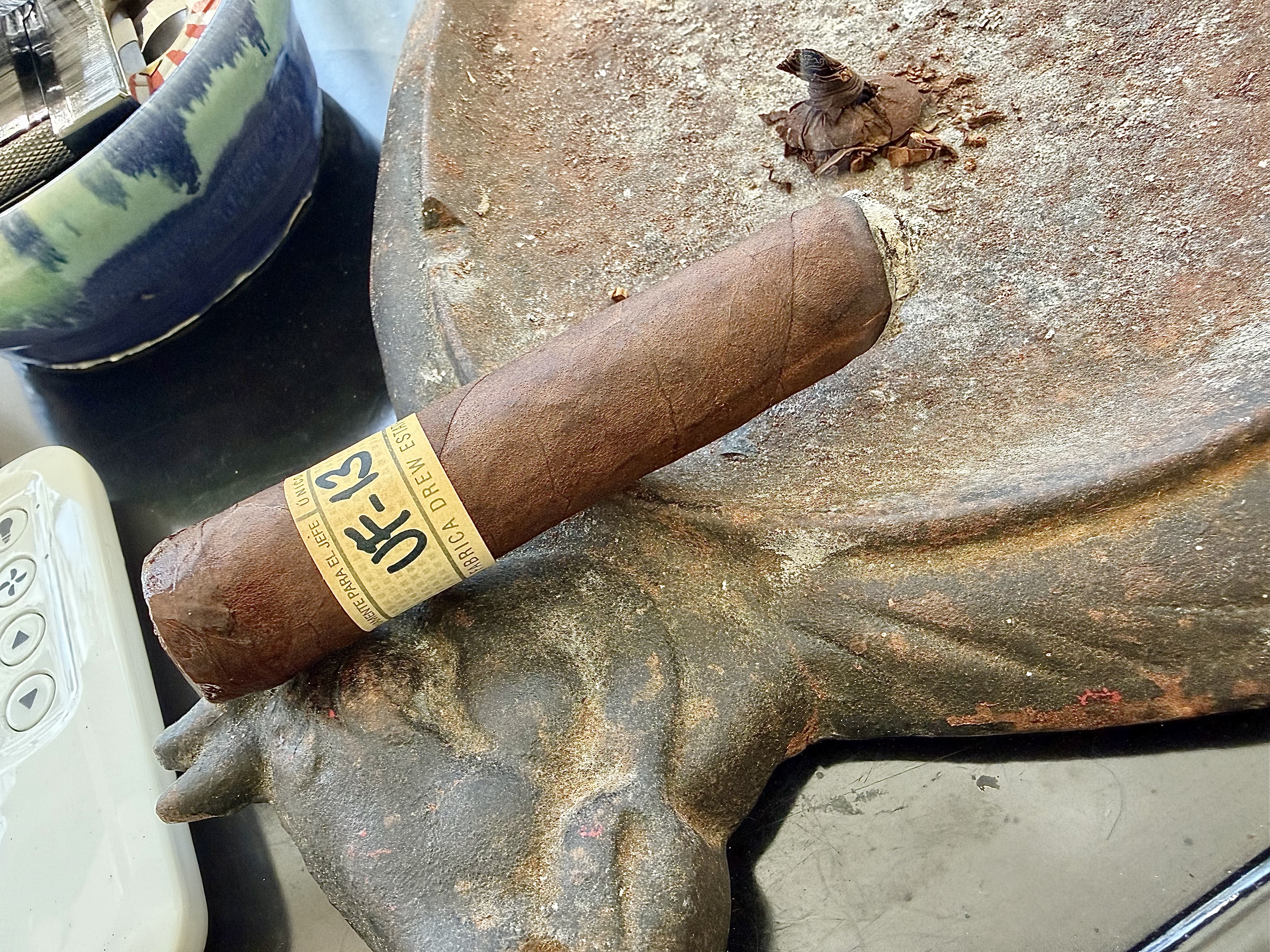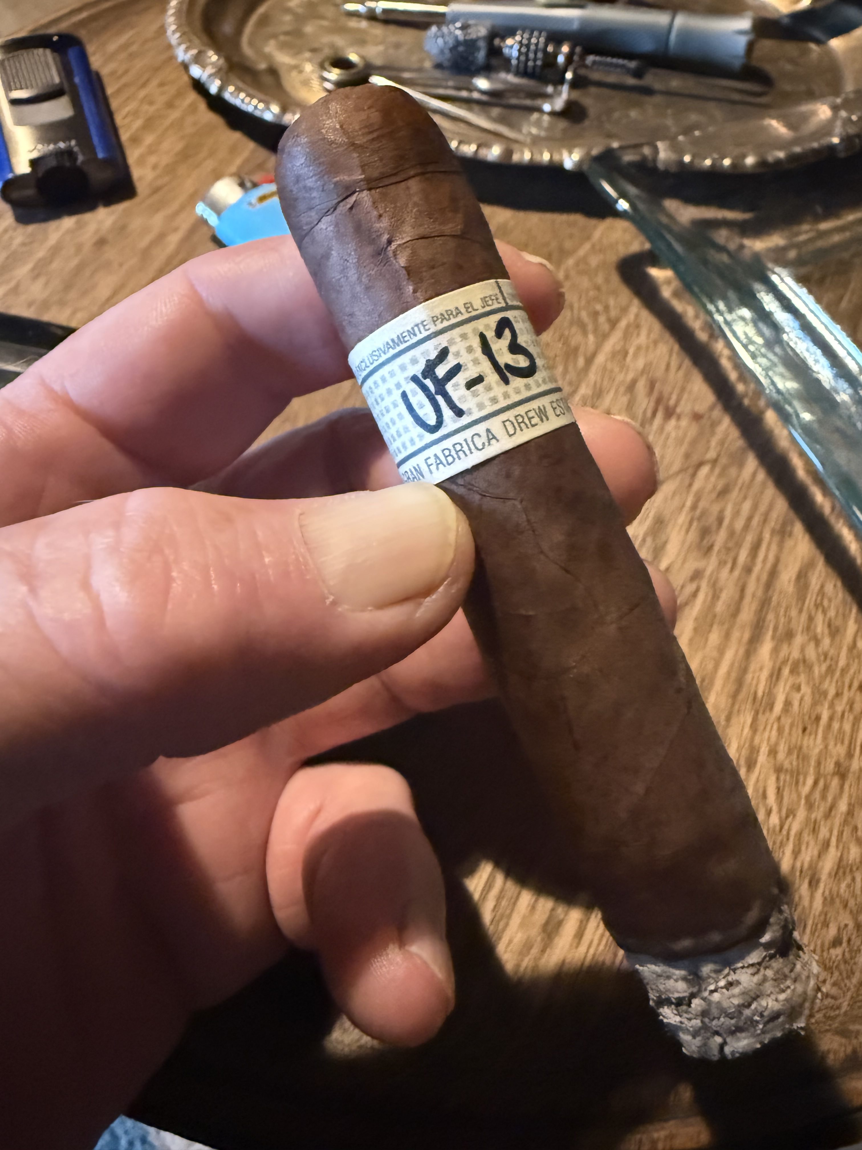 stick to click. good construction, excellent attractive wrapper. draw is very good considering just lopped off the knot. first third mellow, round floral with slightest bite of pepper. second third even, more of the same. swapping out pepper for vanilla and malt hints. last third rams up the pepper with a vanilla leather back. great some.