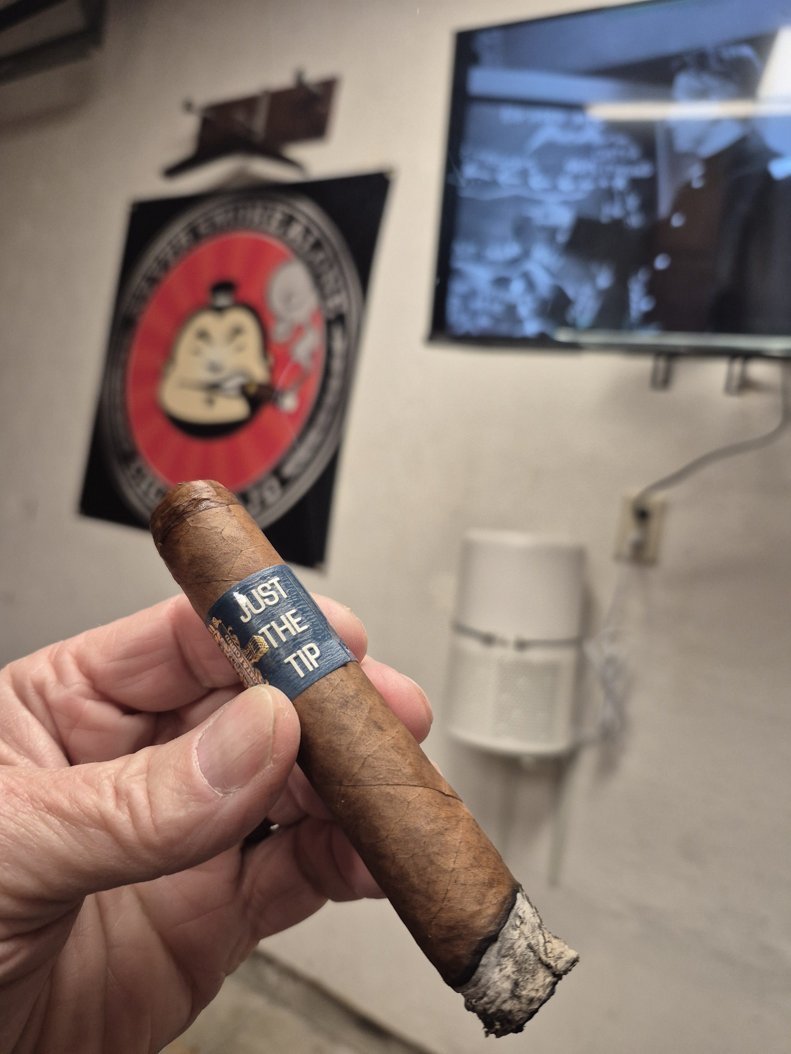 Just the Tip from Lost & Found is said to be a sequel to the 15 Minutes of Fame cigar, using the same recipe in a girthier robusto format. This includes a Habano wrapper, Sumatran binder, and fillers from Nicaragua and the DR.
