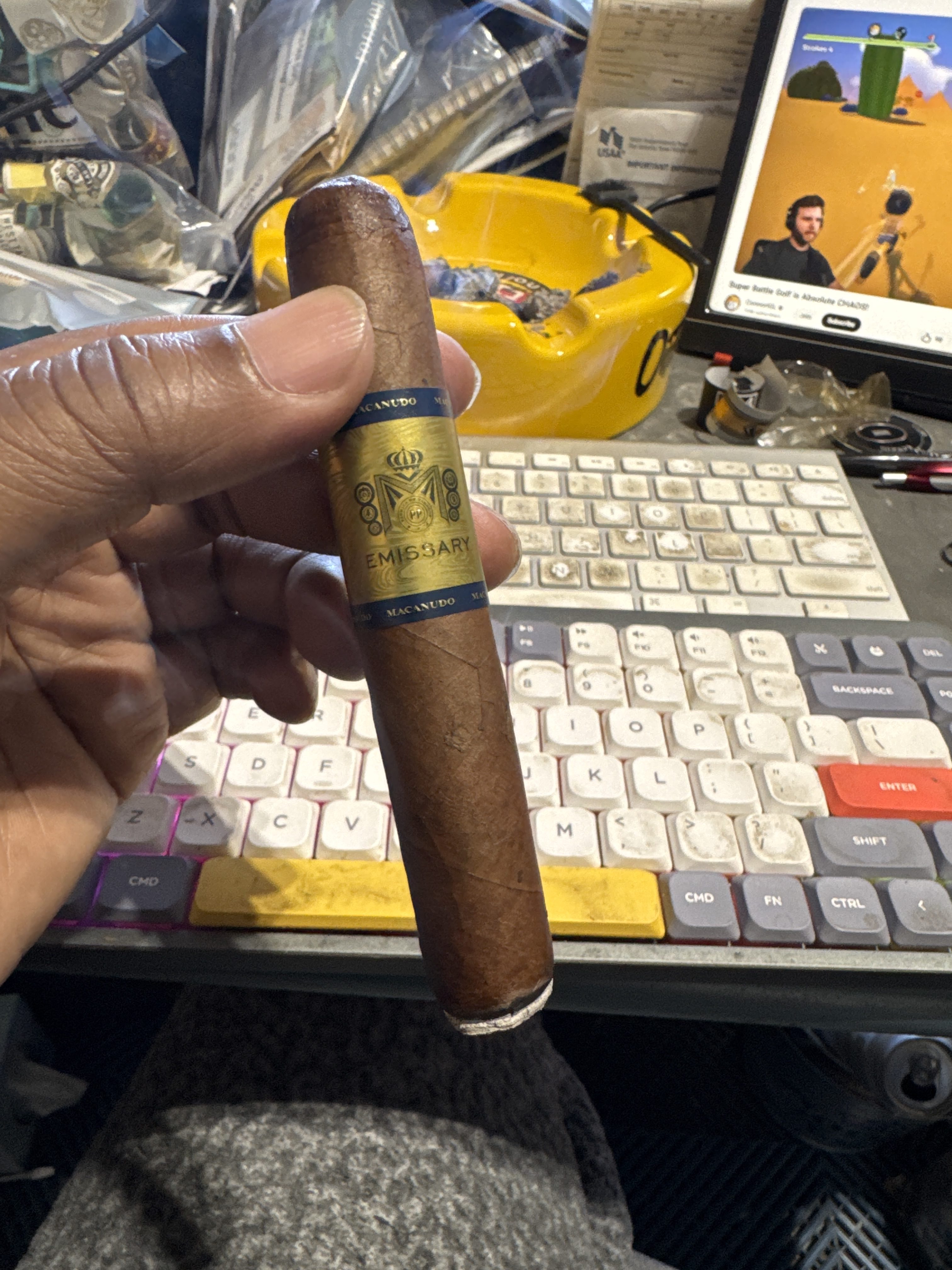 Macanudo Emissary France debuted in 2025, following the brand's former Macanudo Emissary España. The cigar continues the focus on tobaccos not normally featured in the premium market—namely, a French tobacco from the Mugron River Valley, which was grown near Bordeaux. This four-year-aged leaf, located in the cigar's filler, is joined by an Ecuadorian Habano wrapper (aged 10 years), a USA Broadleaf binder (aged 10 yeas), and a filler blend composed of Dominican Piloto (aged 10 years), USA Broadleaf (aged eight years), and Brazilian Arapiraca (aged seven years). Macanudo describes the French component as "[imparting] nuanced notes of salt and dark berries, delivering a refined and complex smoking experience. "