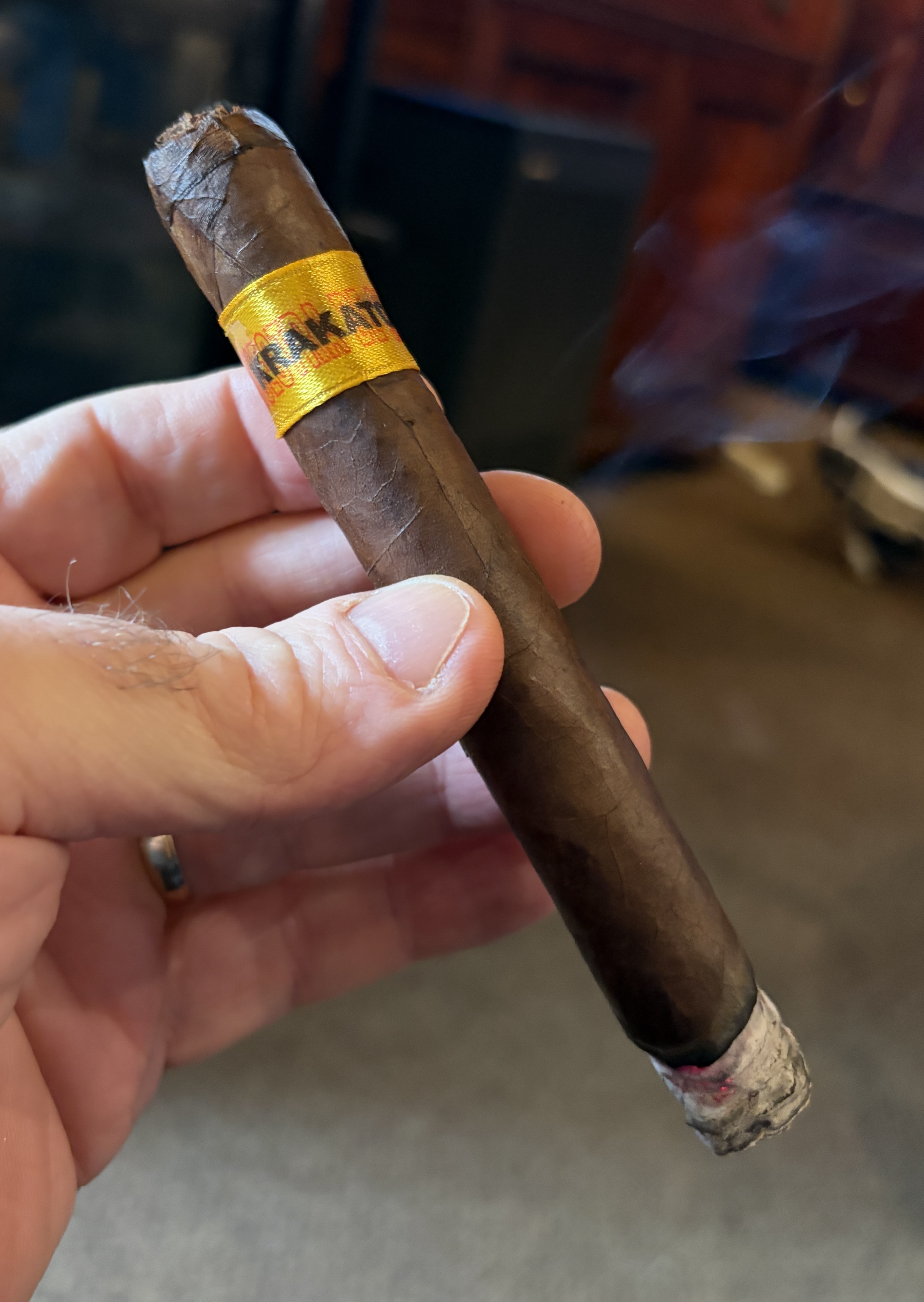 Dunbarton Tobacco's Muestra de Saka Krakatoa is officially listed as the seventh cigar in the company's sought-after Muestra de Saka collection. The cigars were named for the Krakatoa volcano, located in the Sunda Strait between the islands of Java and Sumatra in the Indonesian province of Lampung. This volcano erupted in 1883, and is considered one of the most deadly volcanic events in modern history. The cigar's strong profile inspired its volcanic name, using an Ecuador Habano Grade A1 wrapper, Nicaraguan sun-grown binder, and fillers of Nicaraguan Broadleaf, Criollo, and Corojo. Interestingly, the cigars mark DTT's first use of AGANORSA tobacco, used in the filler recipe.