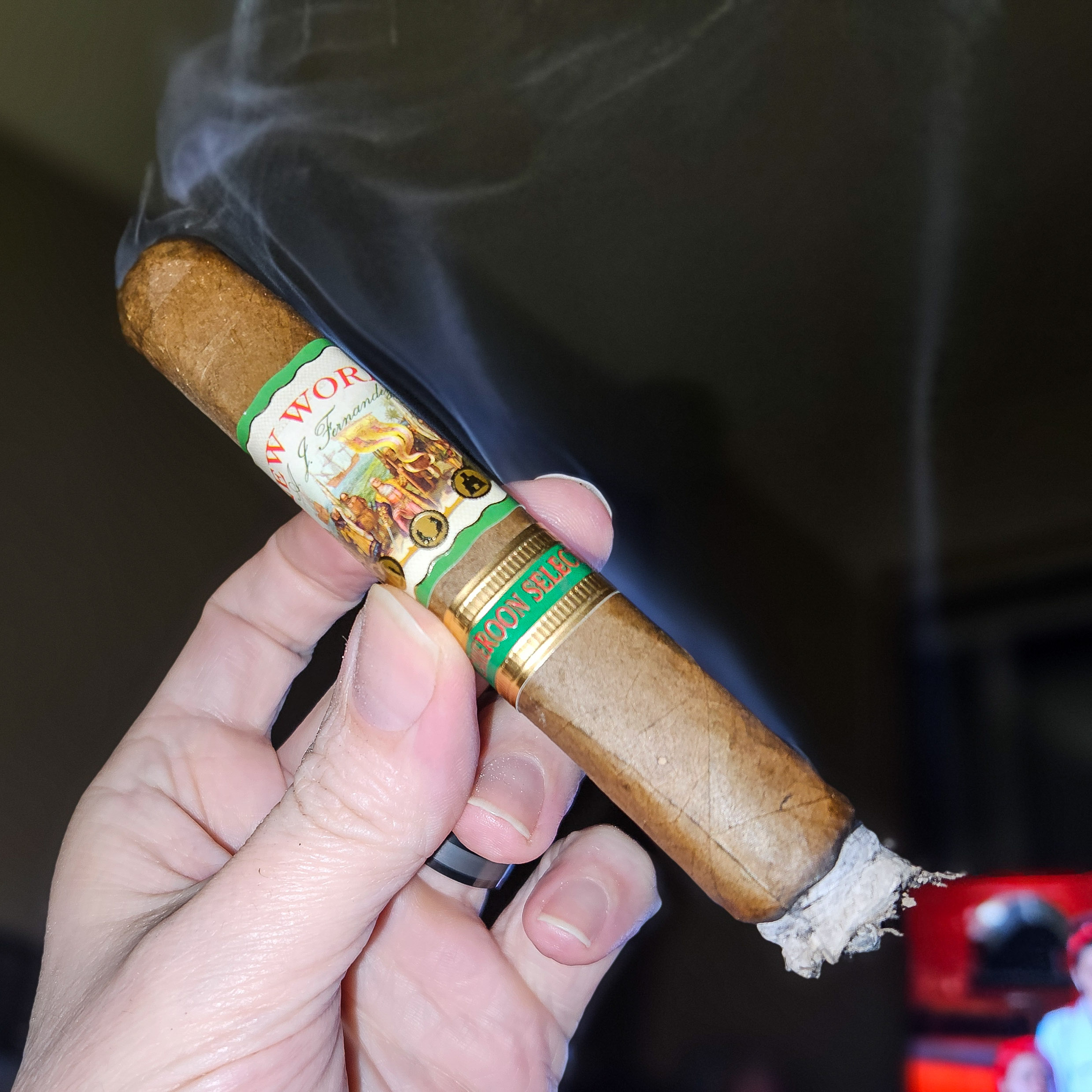 Zing! Spicy fella. I’m enjoying this cigar. Billowy clouds of peppery smoke putting a smile on my face.