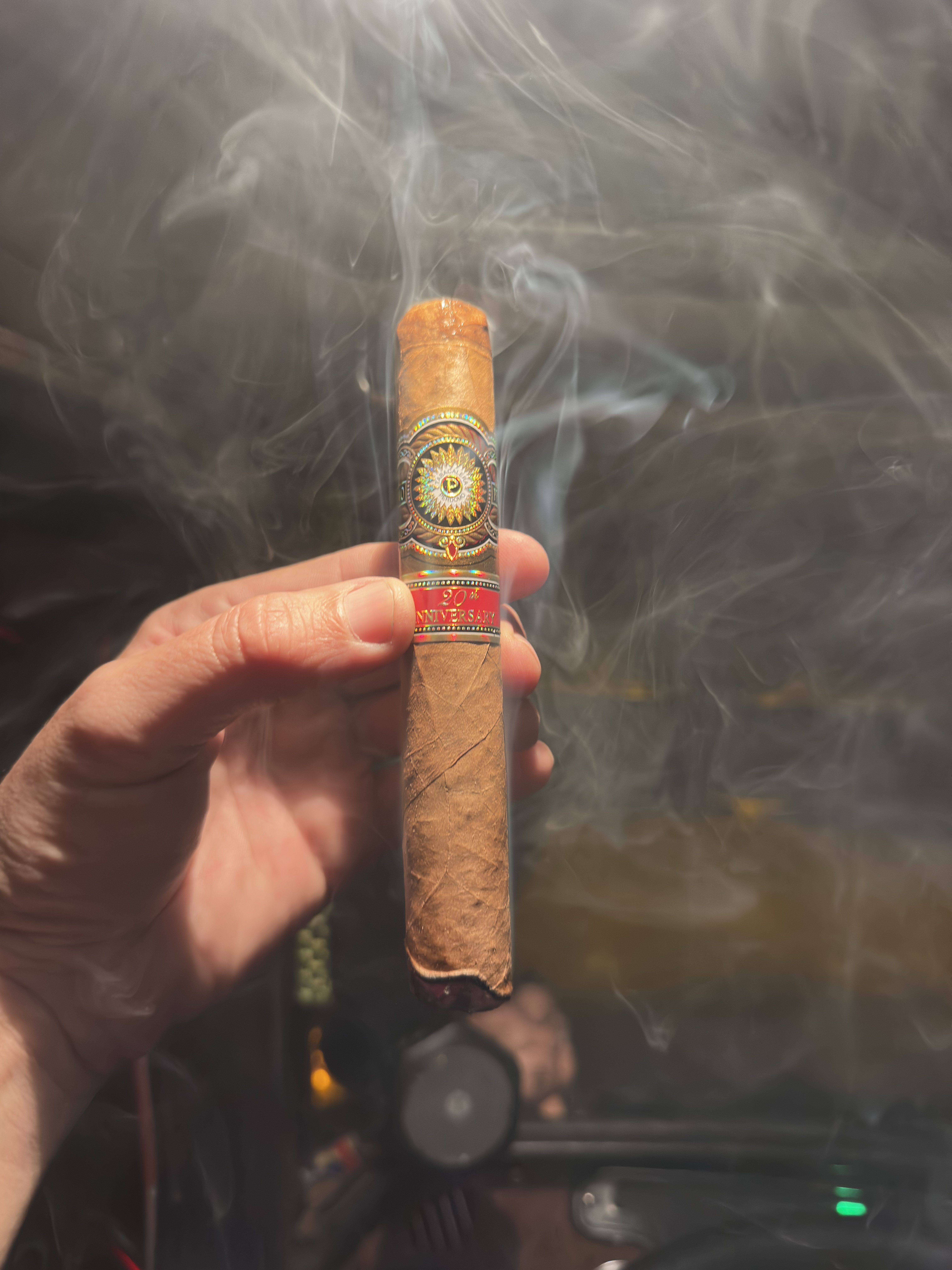 Sitting on the patio watching the storms roll in and enjoying the mild flavor and even pull.
