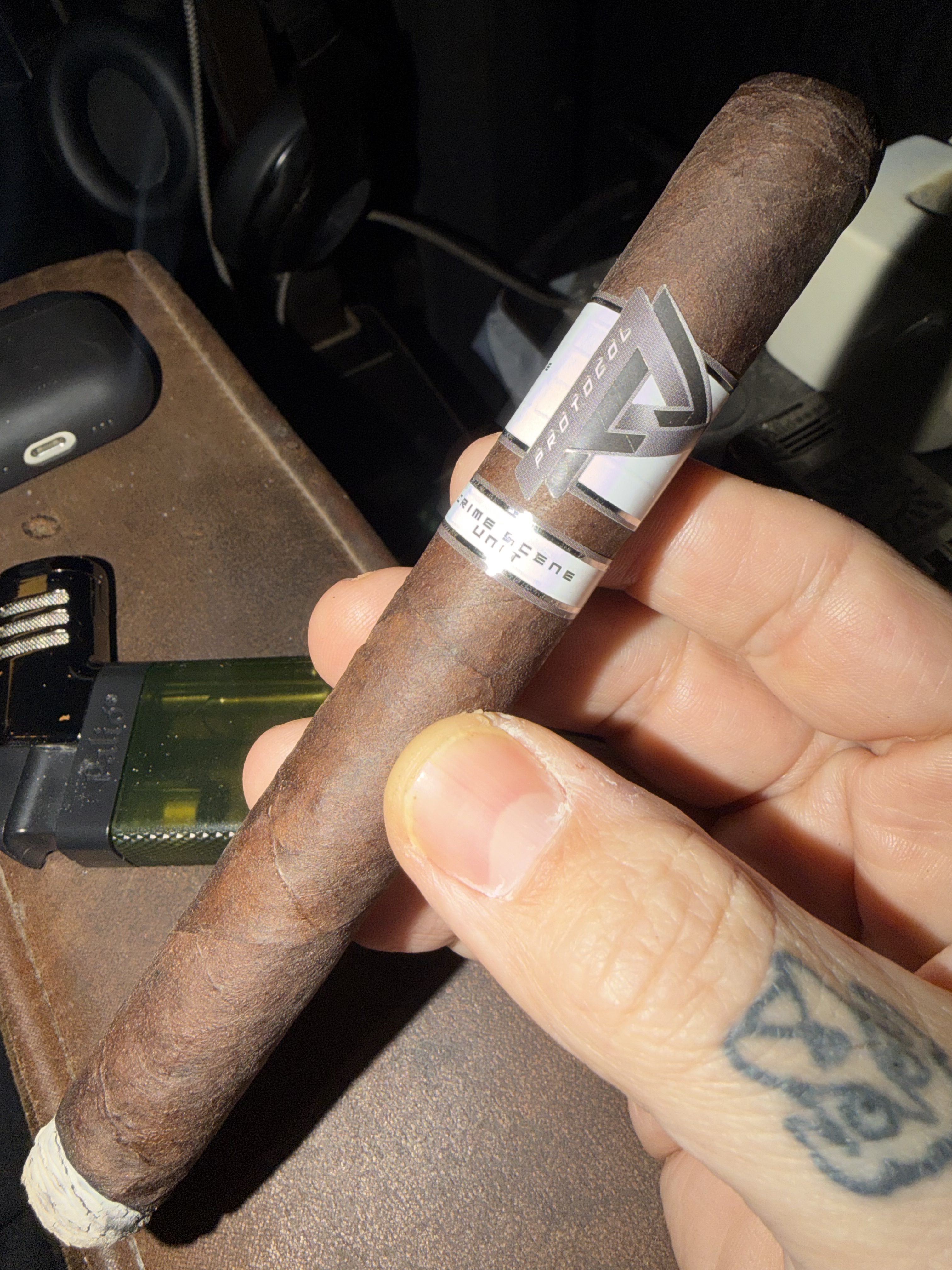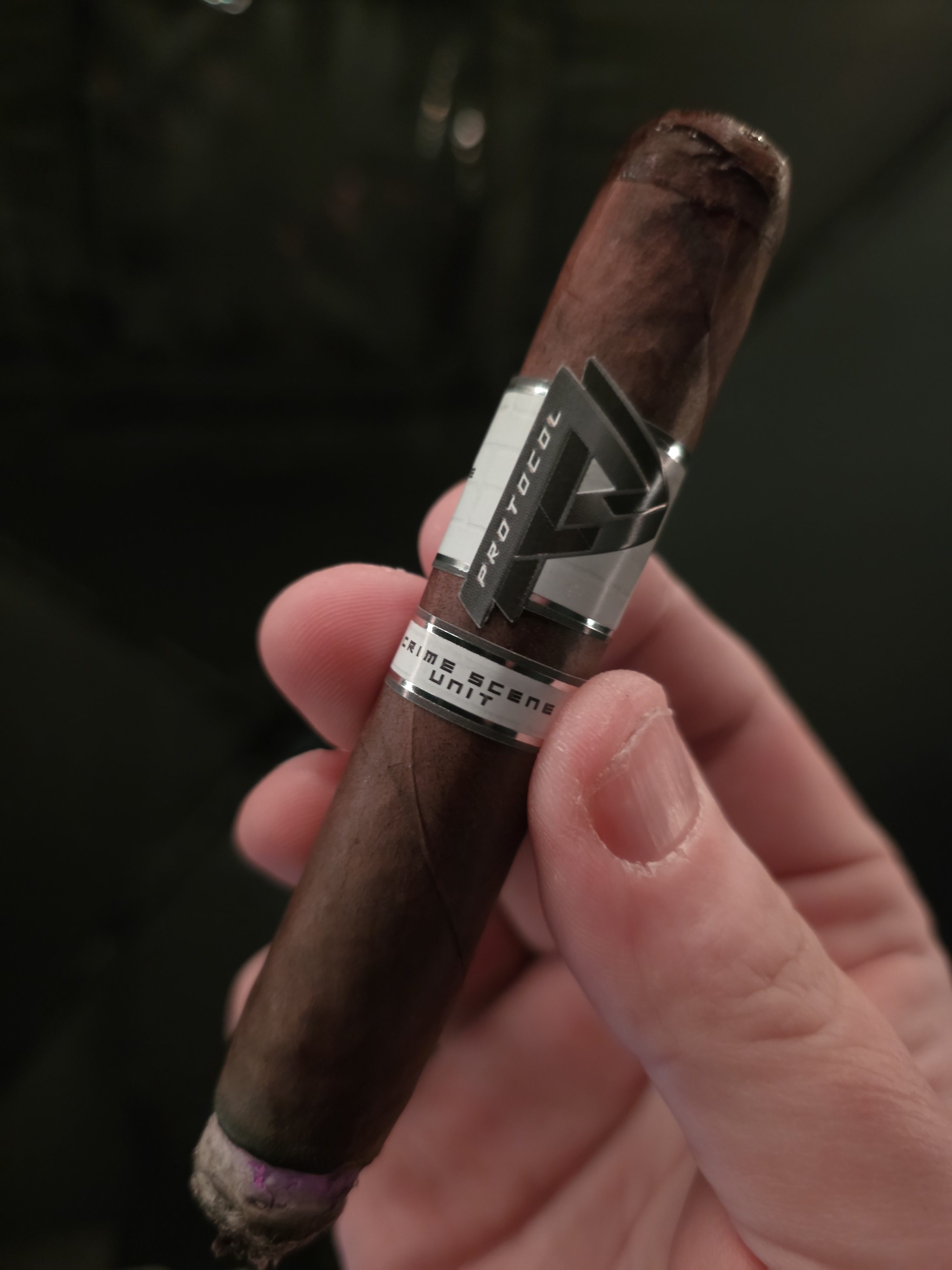 Protocol Cigars' Crime Scene Unit debuted in 2025, marking the first blend in the brand's core core "P" lineup in five years. The blend was made with the help of A.J. Fernández and Héctor J. Alfonso Sr., featuring an authentic Connecticut Broadleaf maduro wrapper for the first time from Protocol. This leaf was joined by a Mexican San Andrés maduro binder and Nicaraguan Criollo and Corojo fillers from Jalapa and Estelí. Rolled in a single 6½” x 50 toro extra size, the Crime Scene Unit was initially limited to 150 boxes of 10 cigars, with (at least) another 150 slated for a later date.
