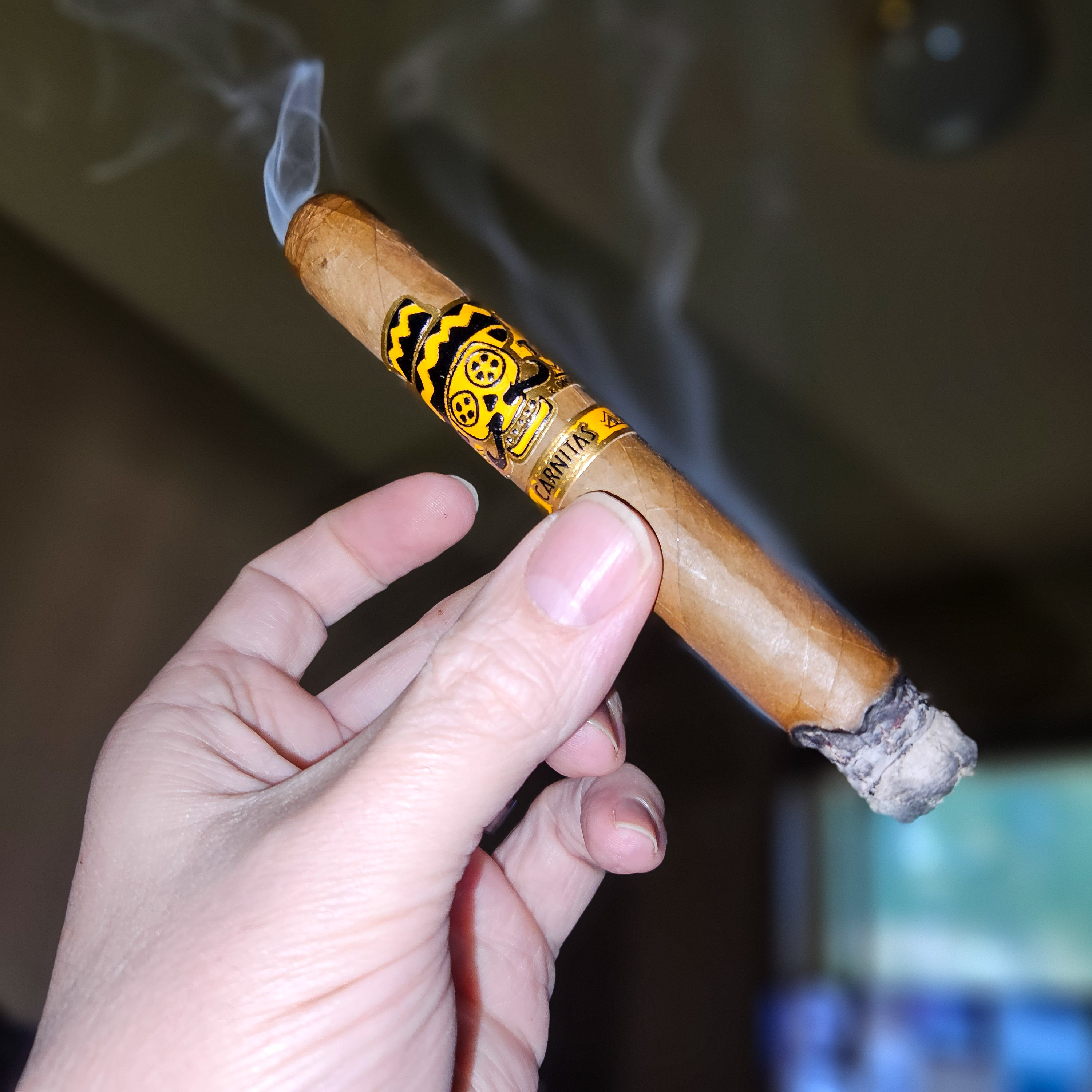 Nice cigar, light smooth, bitter almond. Easy smoking