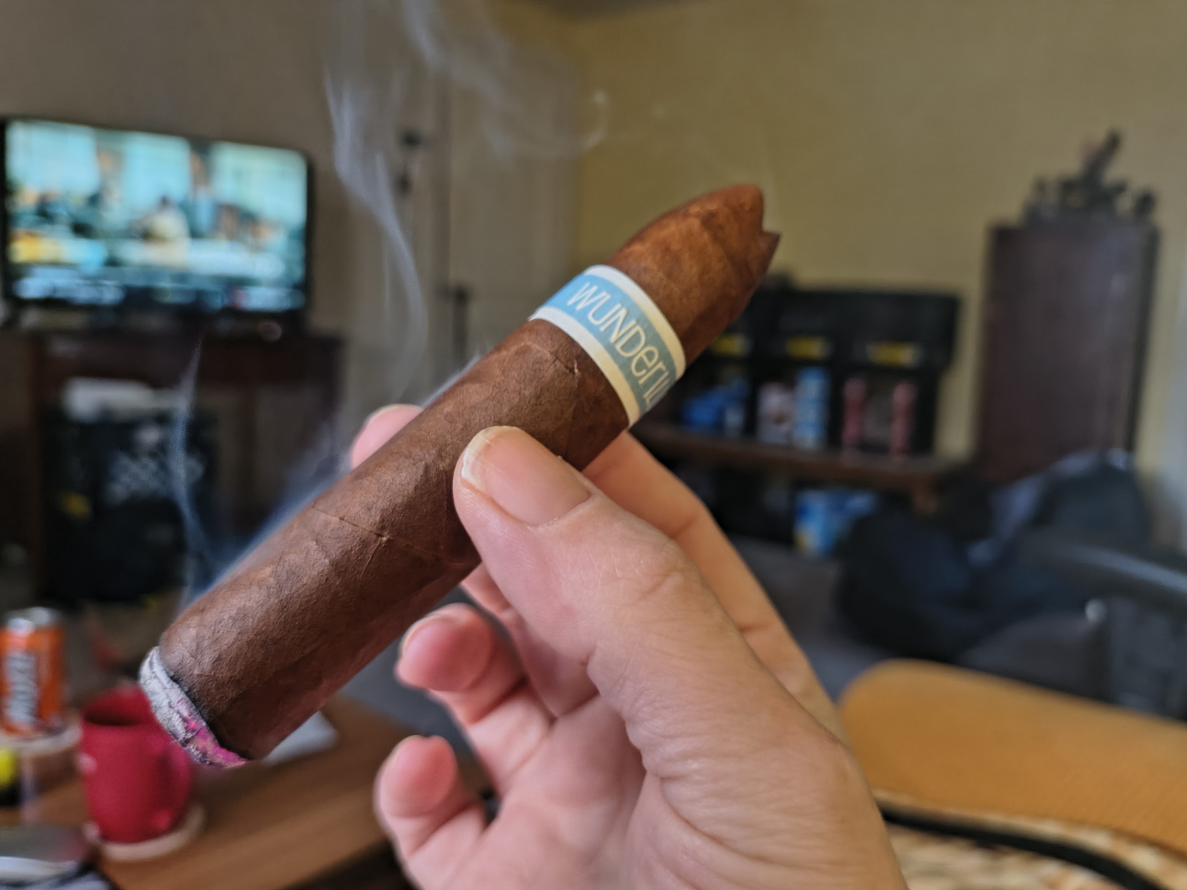 Upon first glance, the Wunderlust cigar boasts a stunning appearance with its impeccably crafted, oily Ecuadorian Habano wrapper that entices the senses. The well-constructed body feels firm to the touch, promising a delightful smoking experience.
