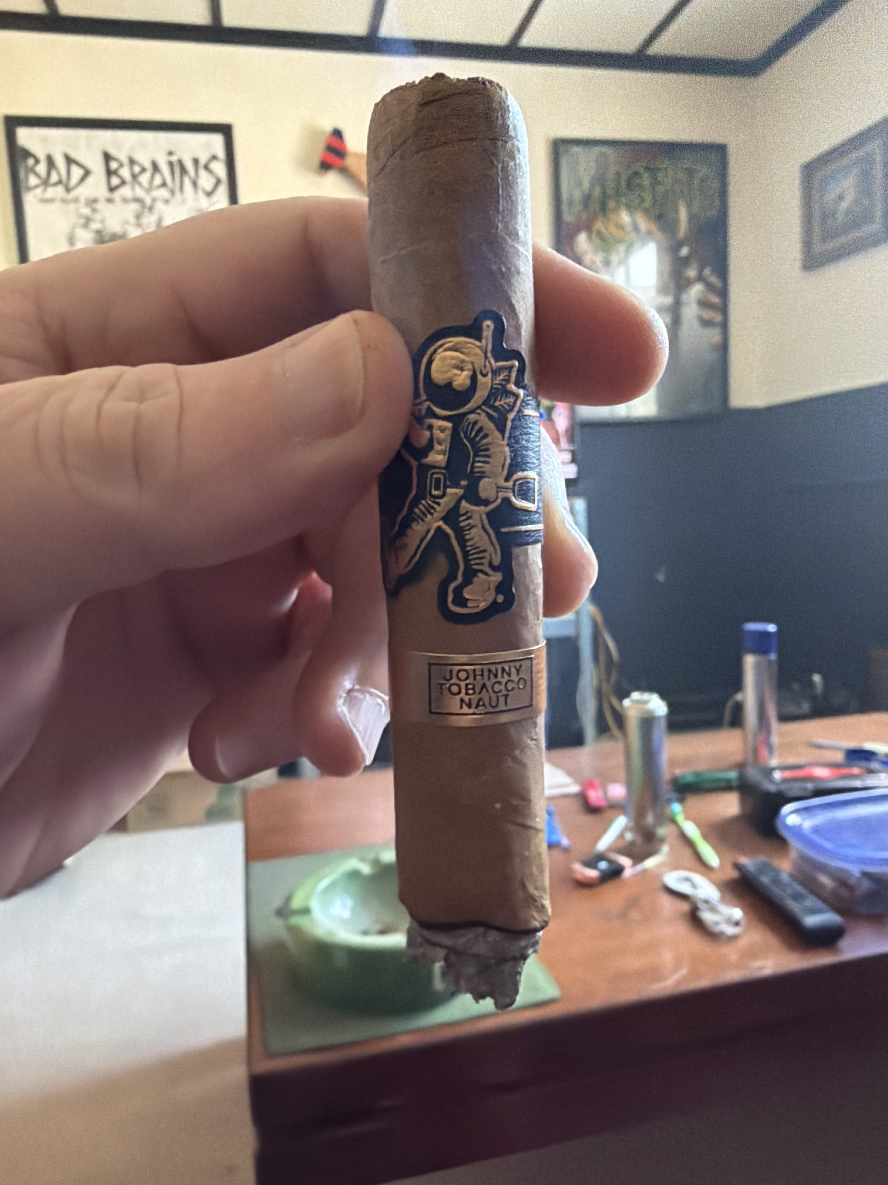 Johnny Tobacconaut was first released in 2015, making use of a Nicaraguan puro blend and being rolled in limited quantities. The cigar returned in 2021, being an exclusive for Luxury Cigar Club and featuring an all-new blend. This cigar later opened up as a regular release for Room101 in 2023, using an Ecuadorian Connecticut wrapper, a Mexican binder, and all-Nicaraguan fillers from the tobacco vaults of A.J. Fernández.