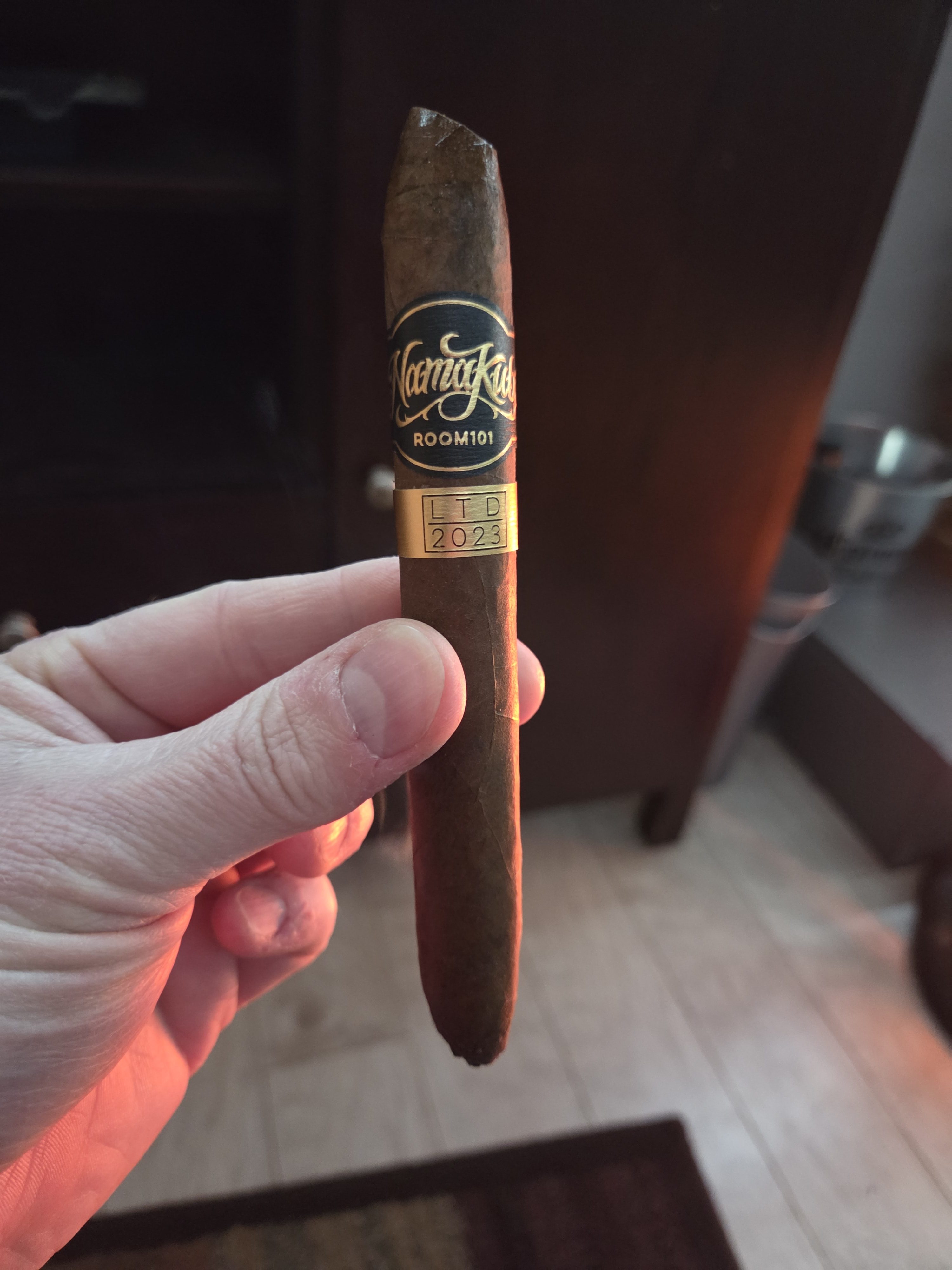 Namakubi was one of the first ongoing series from Room101, being offered in various blends from various countries/factories over the years. The 2023 edition was crafted in the DR, featuring a Mexican San Andrés maduro wrapper, an Ecuadorian Sumatra binder, and fillers of Pennsylvania Broadleaf and Nicaraguan tobaccos.