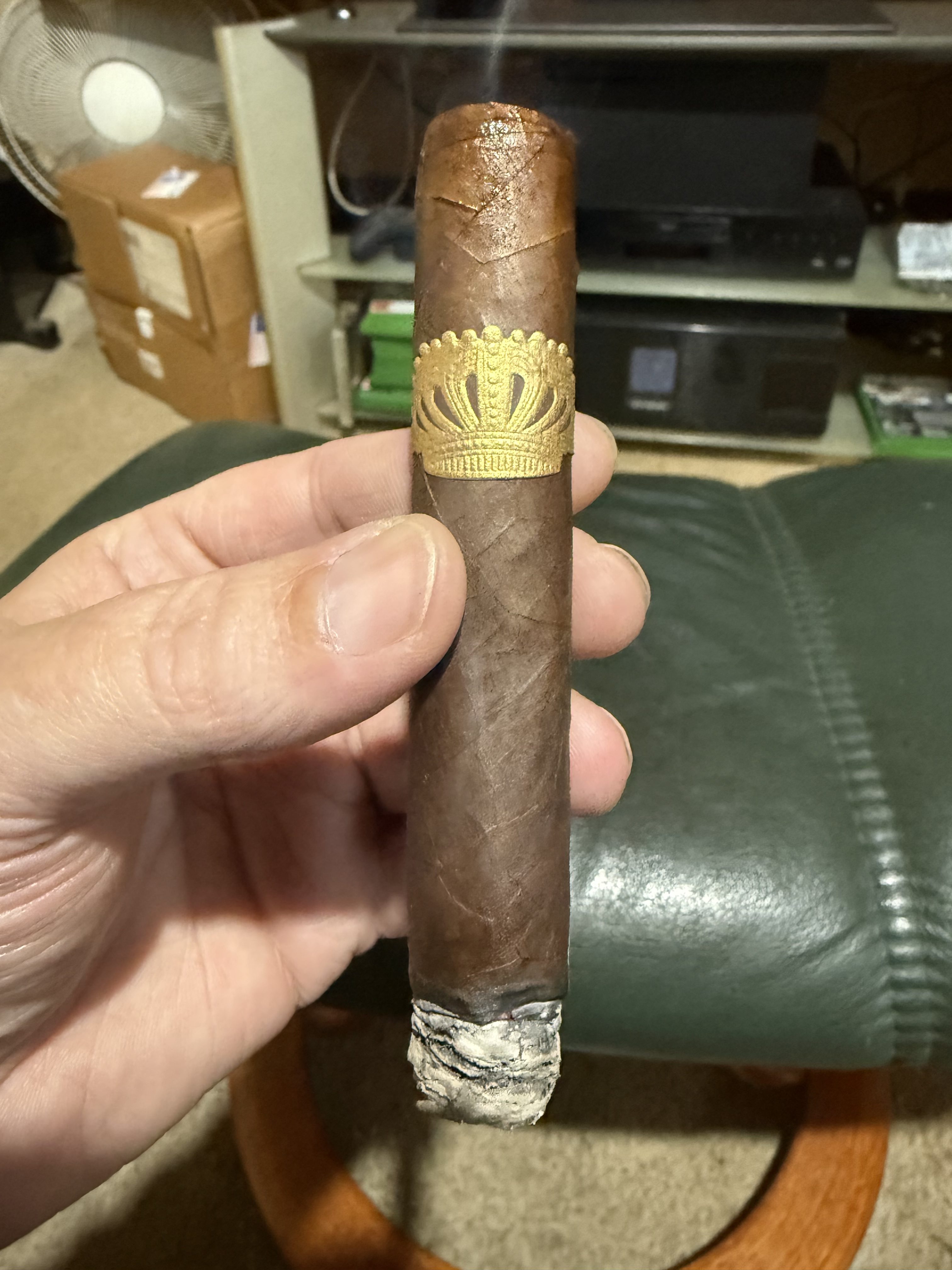 First smoke in awhile. Had a perfect burn. A tighter draw that I like. Flavor was good but didn’t change much from a leathery/espresso flavor.