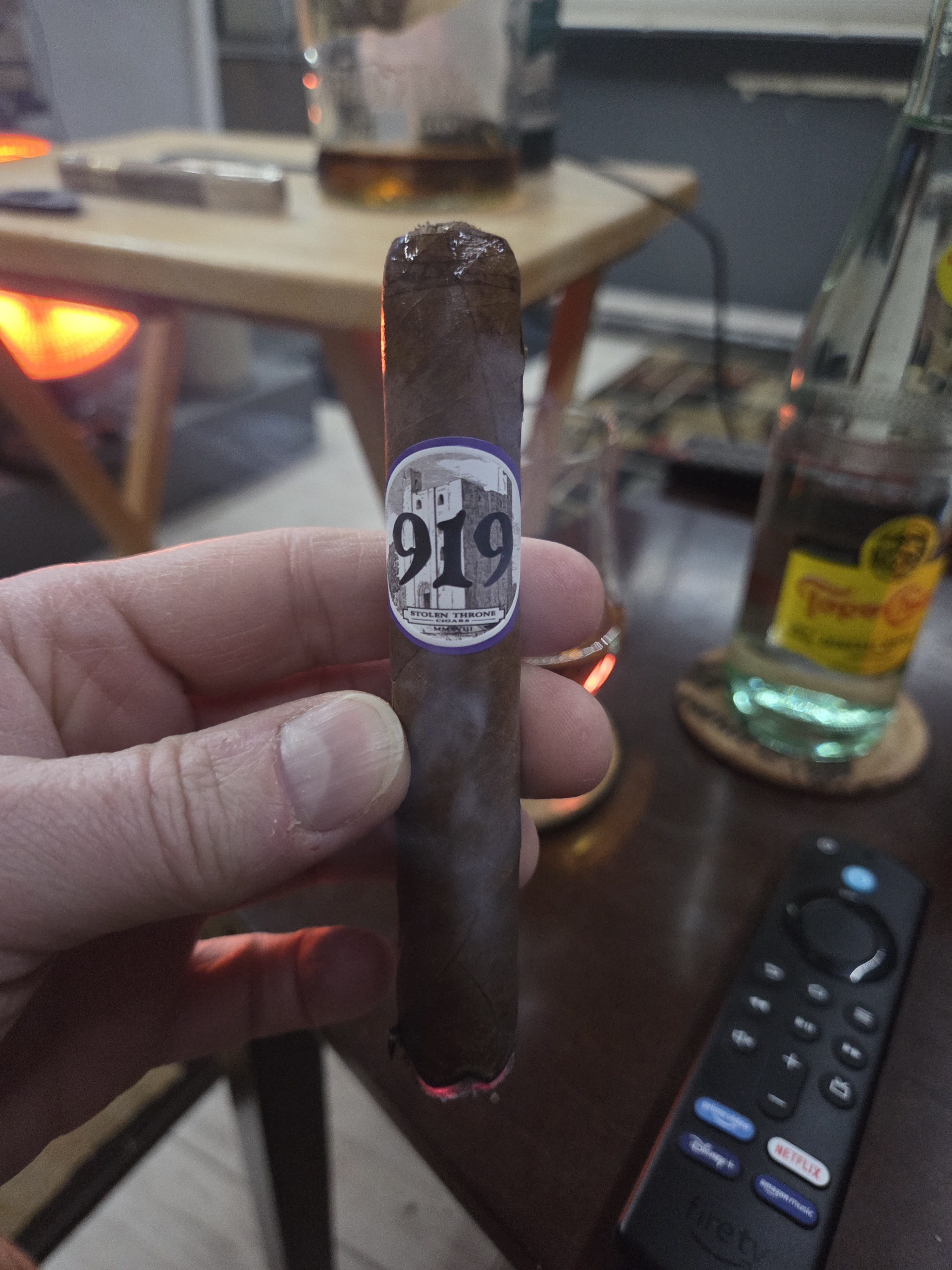The Stolen Throne 919 cigar was named after the childhood home address of Lee Marsh, founder of Stolen Throne Cigars. Growing up in the Essex region of Baltimore, Marsh chose imagery of a castle from Essex, England as the cigar's backdrop. In terms of blend, the cigars feature an Ecuadorian Habano claro wrapper, a Nicaraguan binder, and fillers from Nicaragua and Peru.
