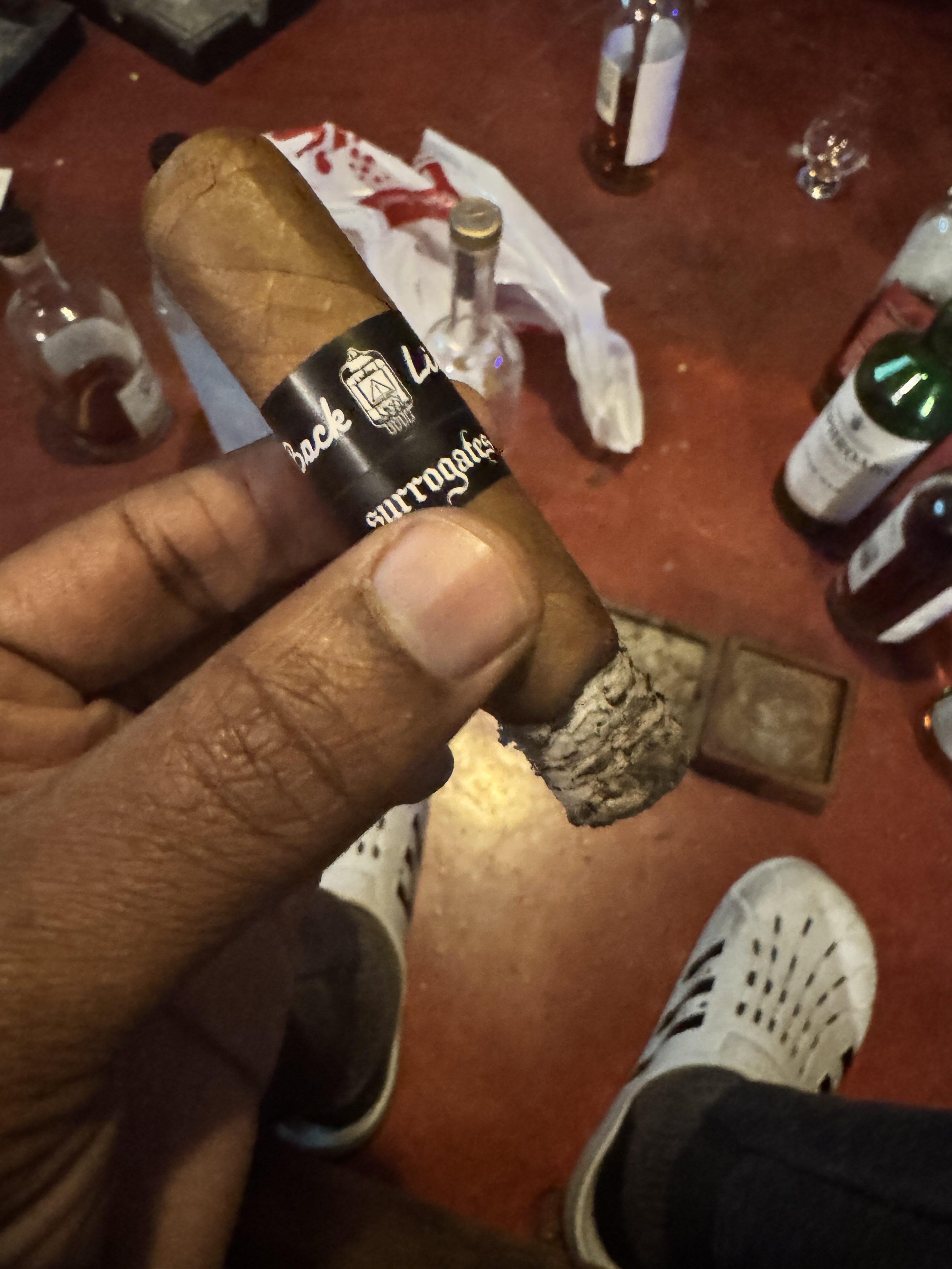 The Surrogates Back Line is a two-vitola release that draws inspiration from guitar amplifiers, packaged in boxes styled after classic VOX amps. Inside each box are 10 cigars of the EL454 (4" x 54) and EL554 (5" x 54) formats, blended with an Ecuadorian Habano wrapper over Nicaraguan binder and fillers. The concept originated from co-founder Dan Welsh, who noticed a resemblance between amp tubes and cigar heads while servicing his gear. Described as medium-full with a clean profile, this limited release is capped at 1,000 boxes and is expected to return annually with future blends tied to different amp styles.