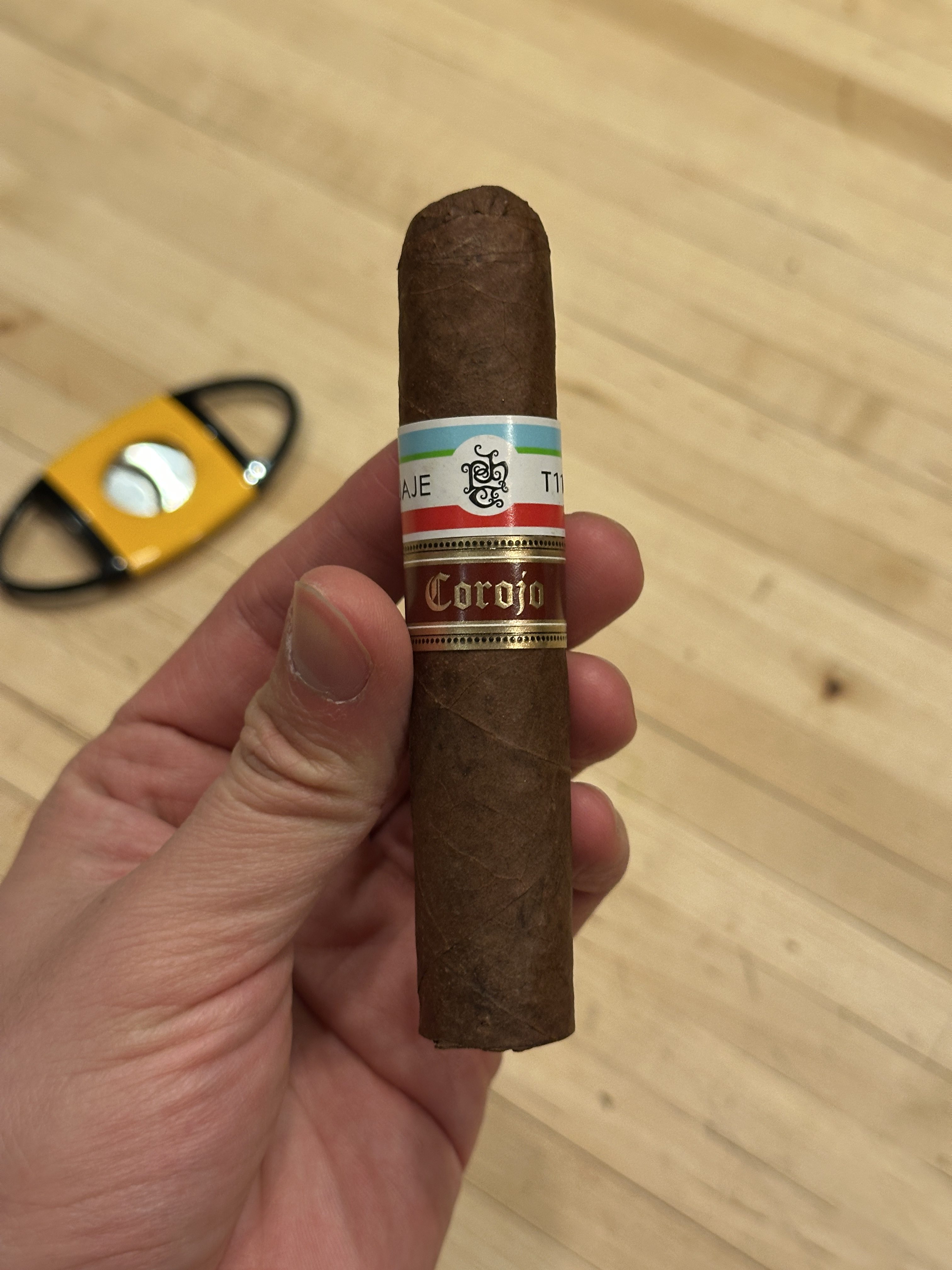 Tatuaje expanded on the fan-favorite T110 series in 2025 with the introduction of the T110 Corojo. Like former T110 releases, the cigars were rolled in a 4⅜" x 52 short robusto format, featuring a fuller-bodied blend of Nicaraguan tobaccos throughout the core of the blend. Differentiating this release from others in the line, the T110 Corojo is finished with a Nicaraguan Corojo wrapper, being limited to 4,000 boxes of 25 cigars in the initial run.