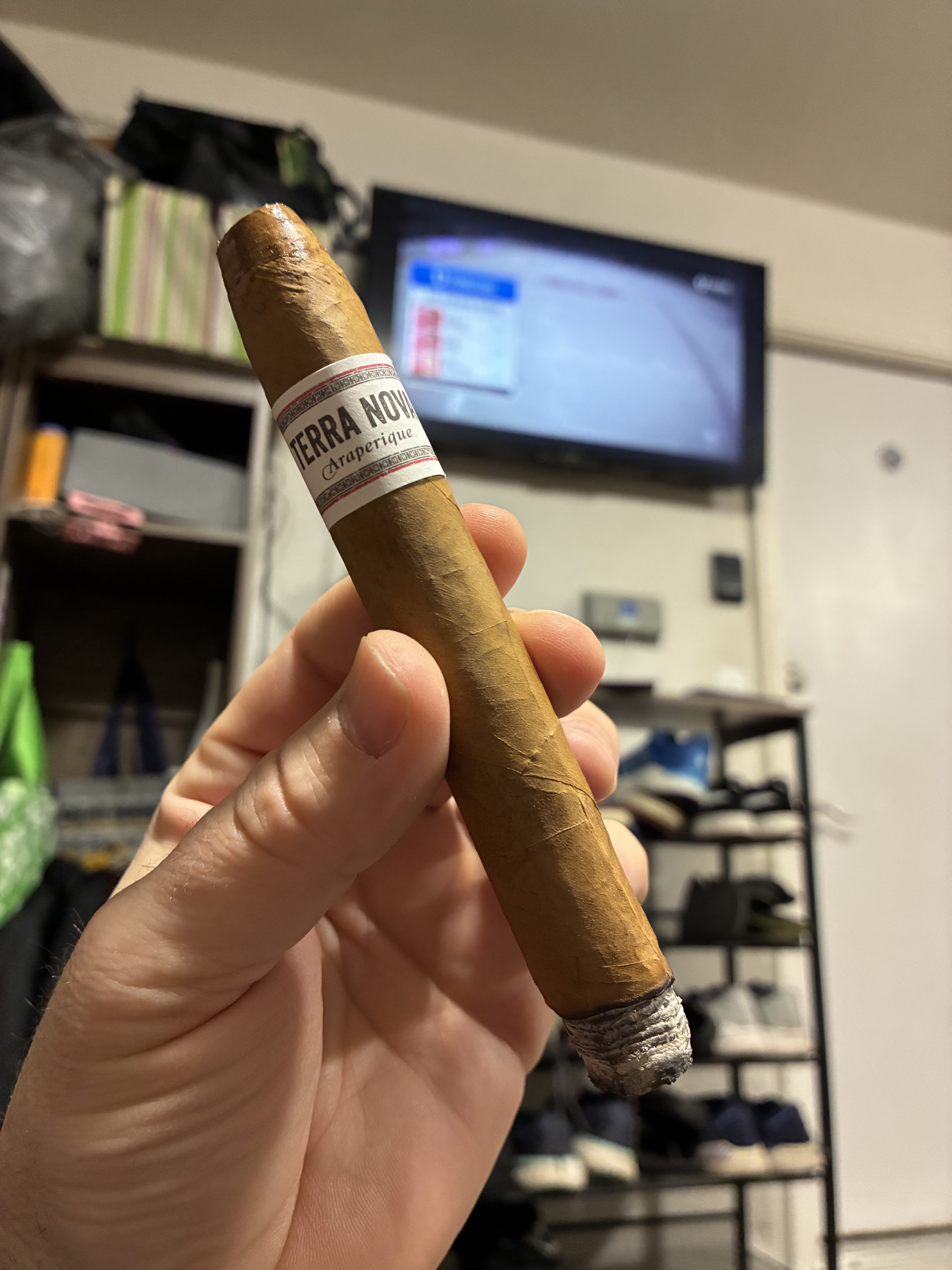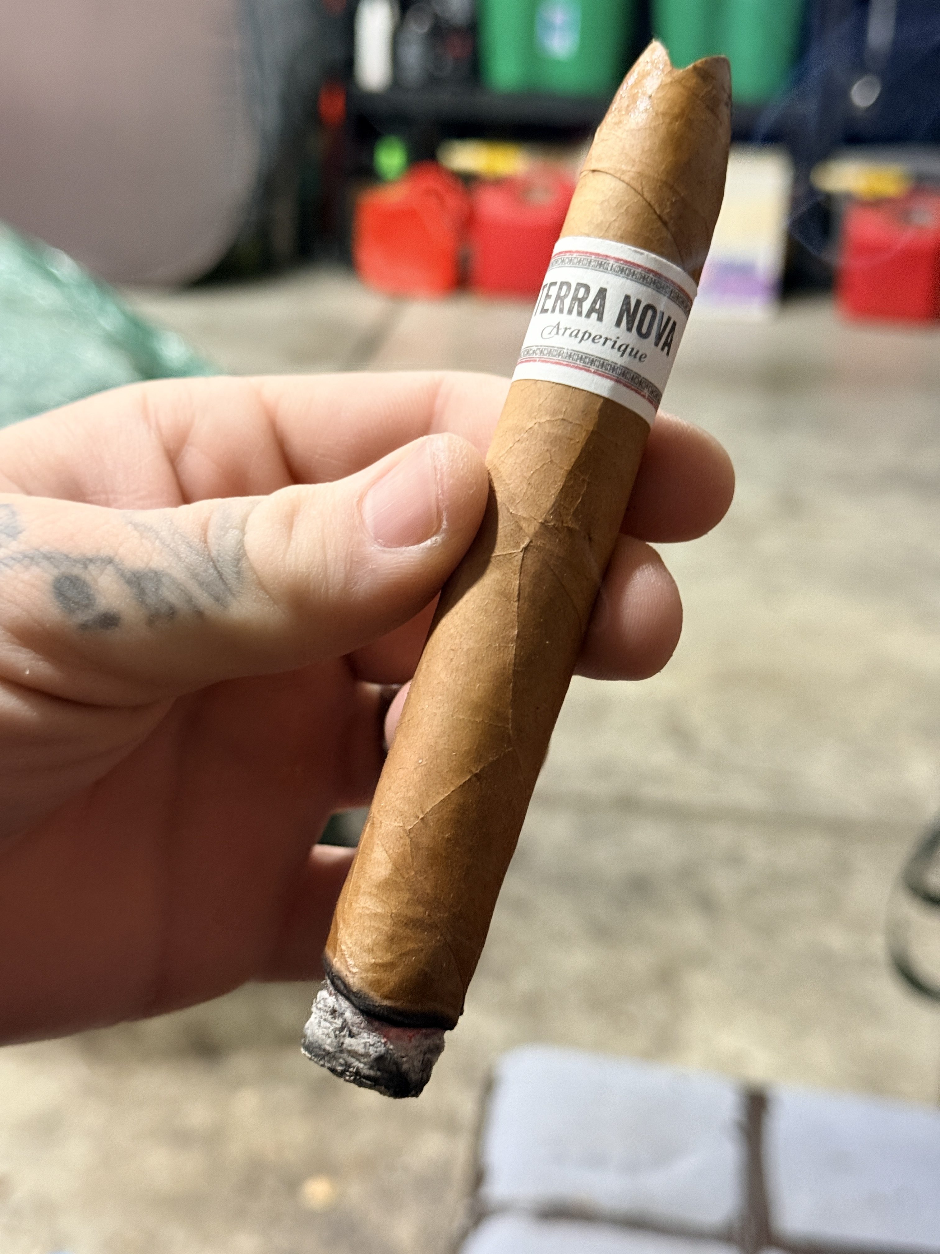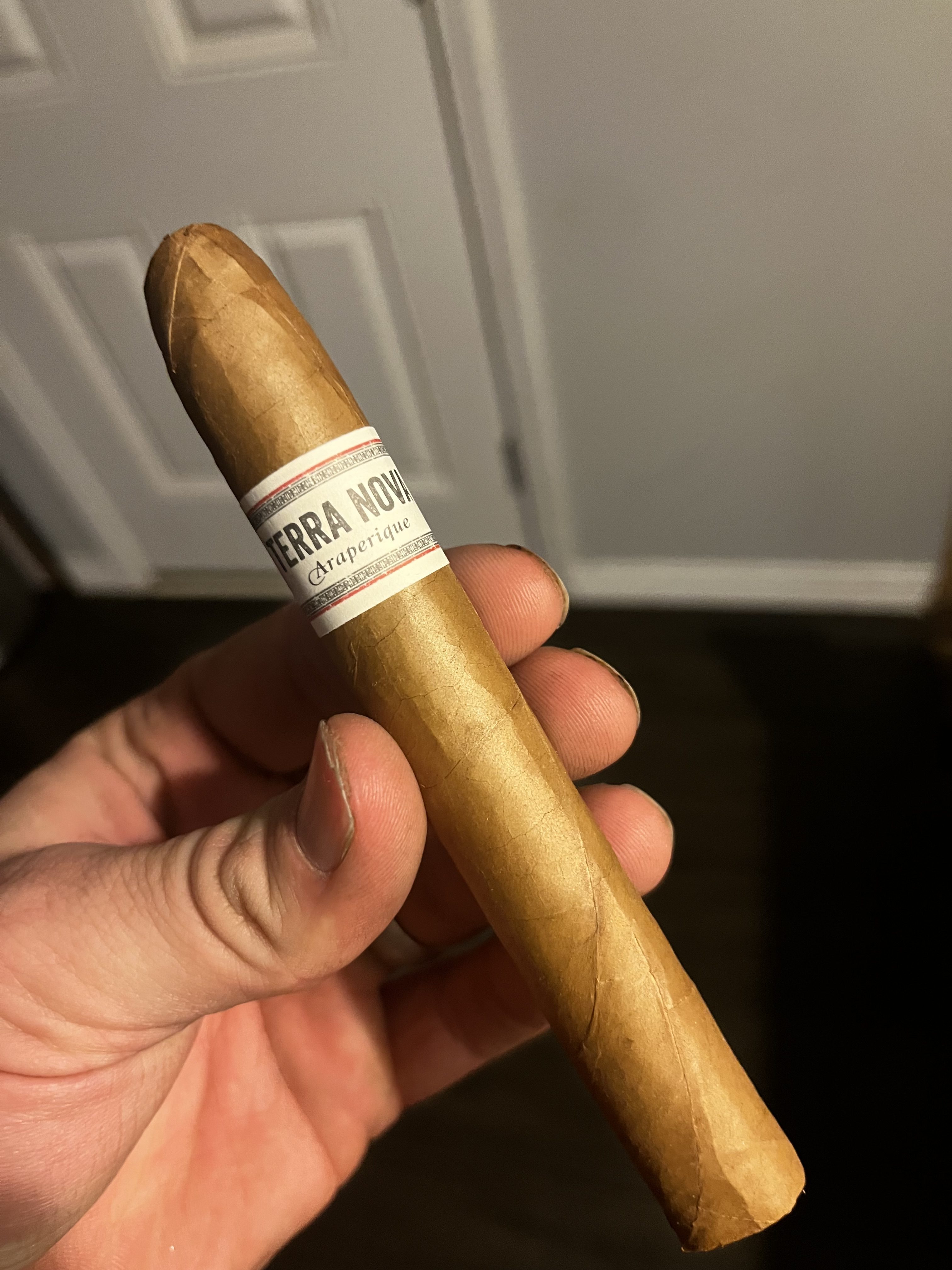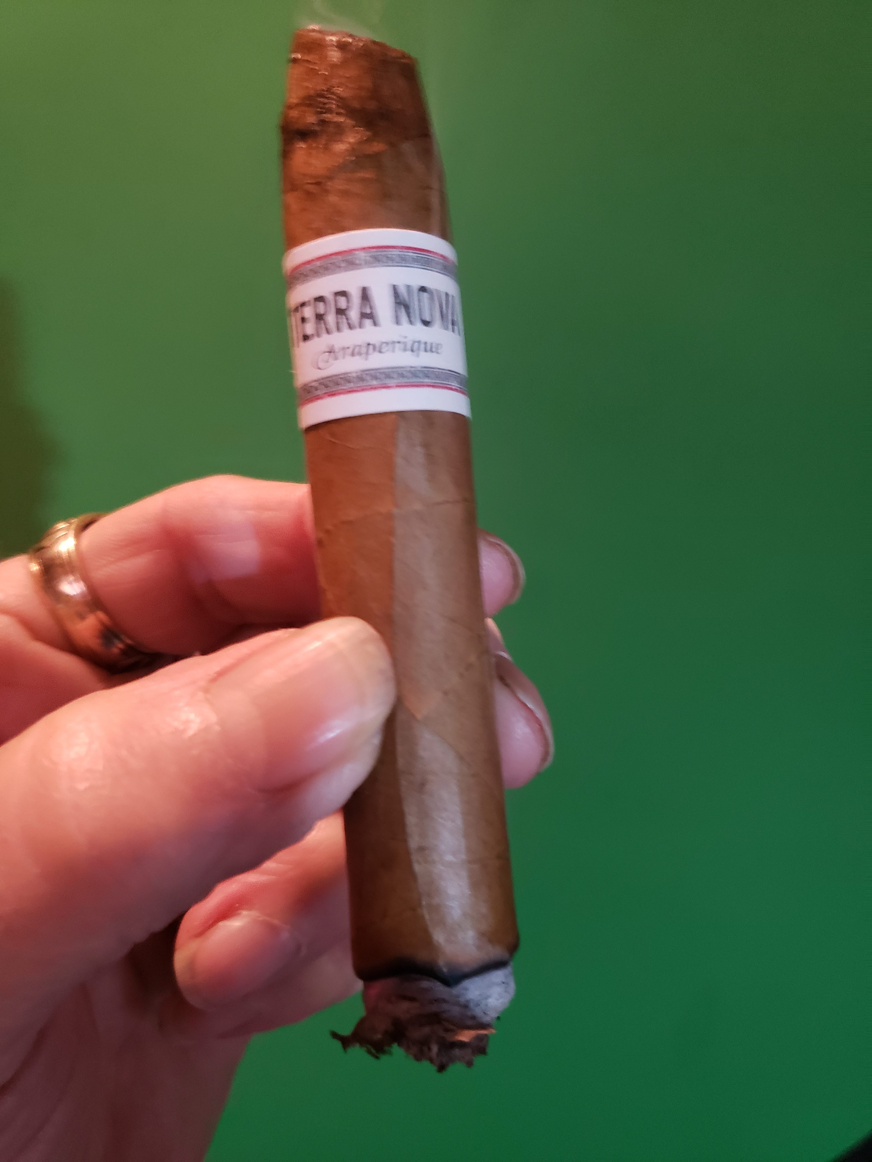 Terra Nova Araperique is named for the cigar's unique Brazilian Araperique tobacco, which is included in the filler recipe. This tobacco is "matured using the ‚Method Perique‘ (layered in oak whisky barrels and matured under high pressure for at least a year) which is still based on the methods used by the Choctaw Indians." The blend begins with an Ecuadorian Connecticut wrapper, and includes an Ecuadorian Sumatra binder and fillers of the Dominican Republic, Peru, Nicaragua, and Brazil.