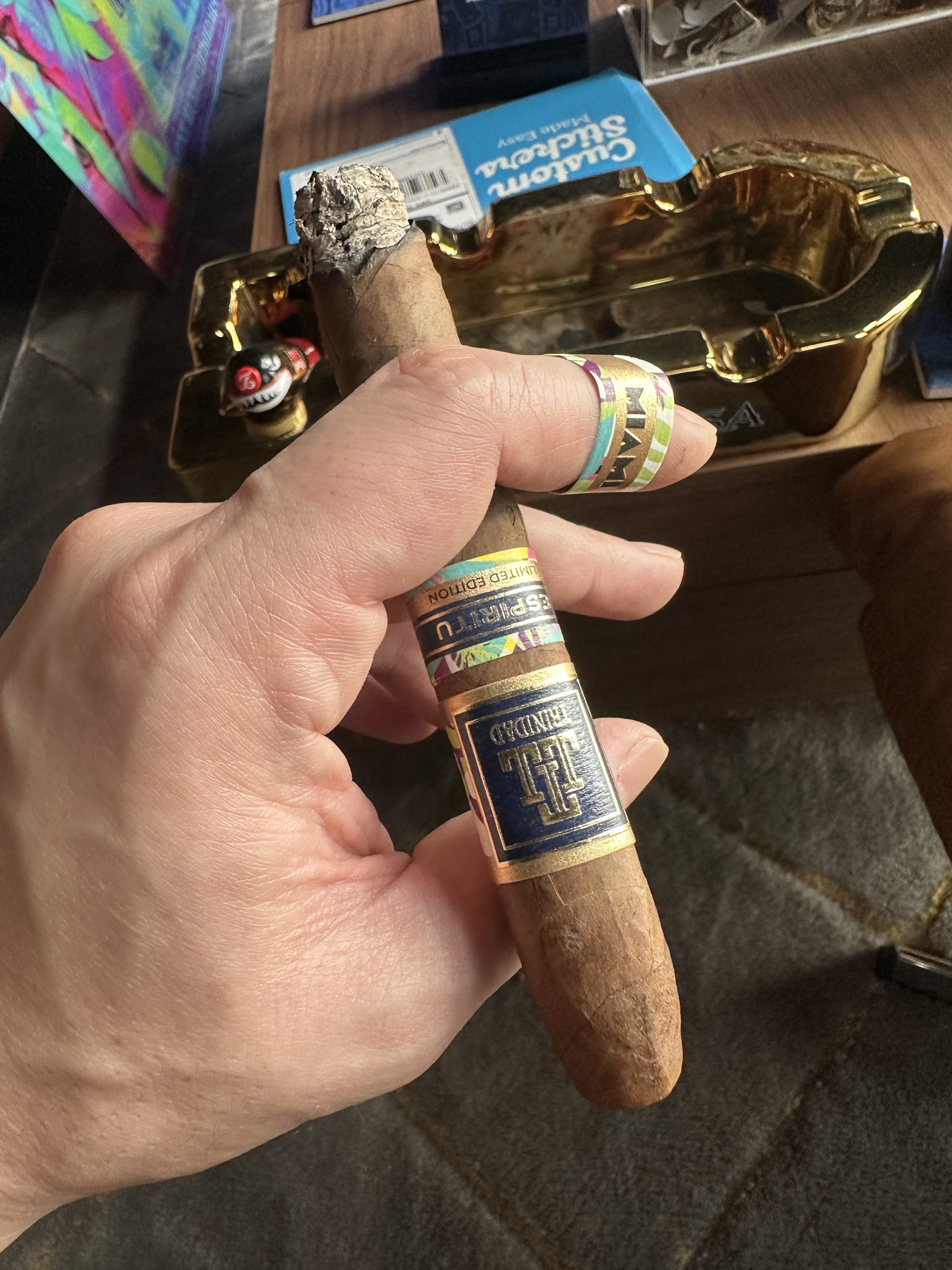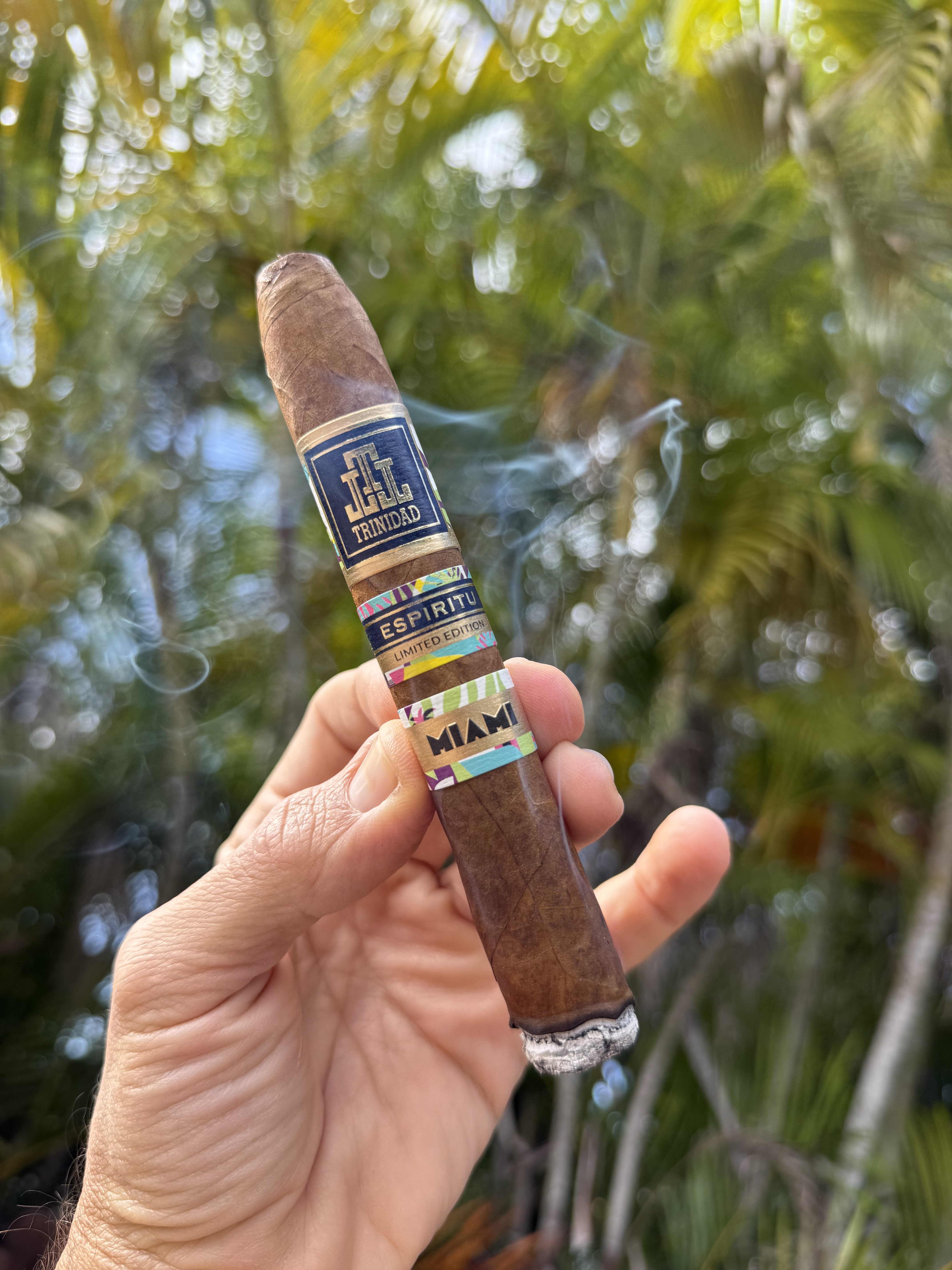 The Trinidad Espiritu Miami Edition debuted in 2025, being the fourth release under the Espiritu line (and the first limited offshoot). The cigars were rolled in a single 6⅛" x 52 belicoso format, making use of an all-Nicaraguan blend from A.J. Fernández. Each Espiritu release has been inspired by various cultures, now including Cuba (Espiritu Series No. 1), Brazil (Espiritu Series No. 2), Mexico (Espiritu Series No. 3), and Miami. The Trinidad Espiritu Miami Edition was limited to 4,000 boxes of 20 cigars.