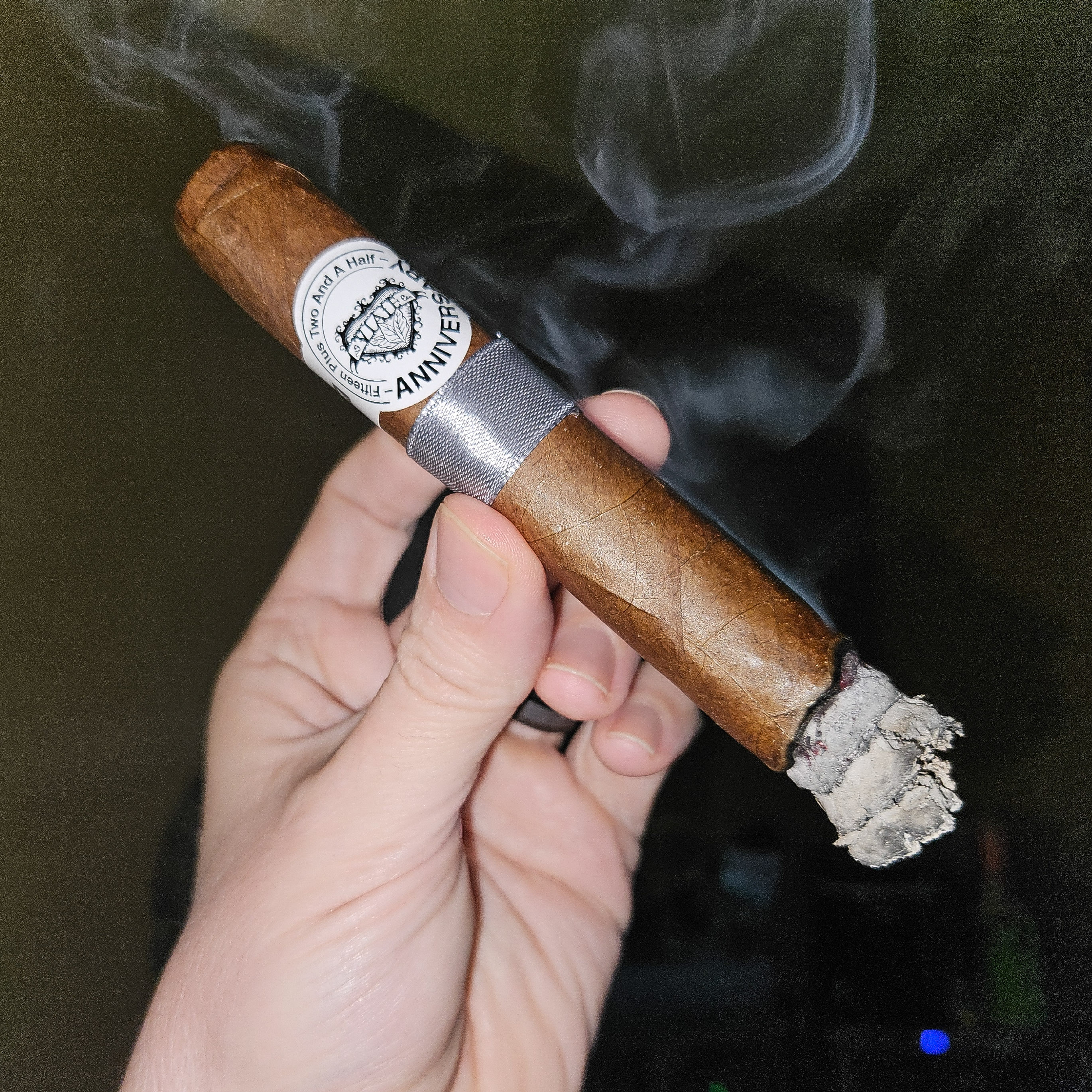 The Viaje Fifteen Plus Two and a Half Anniversary - Silver cigar is one of four blends made to celebrate Viaje's unconventional 17-and-a-half-year journey, being joined by the Red, Gold, and Black variations in the collection. While all four are rolled in the same 6 x 54 box-pressed toro size, the tobaccos vary (said to be primarily from AGANORSA farms), with the Silver making use of a Criollo '98 wrapper.