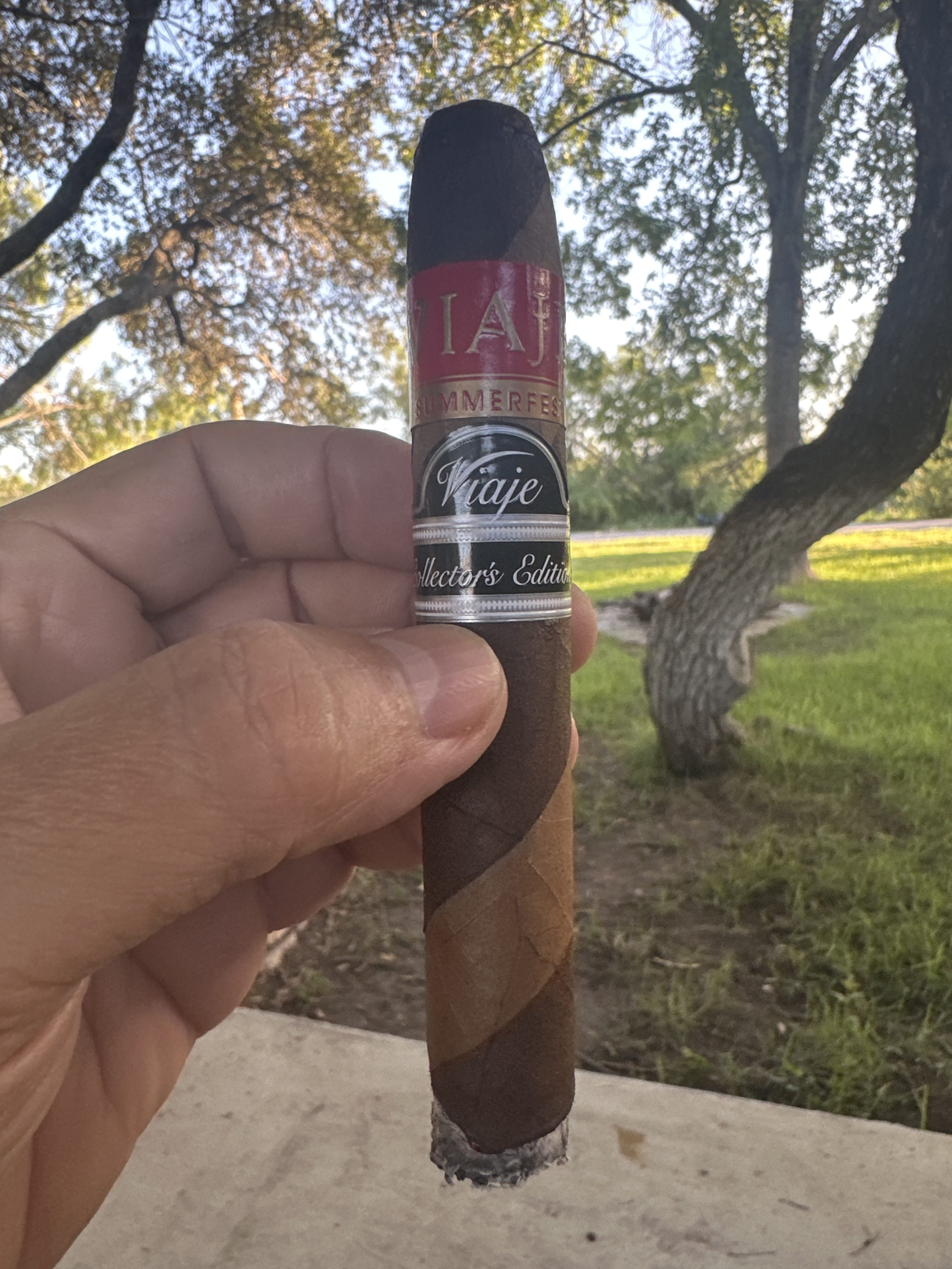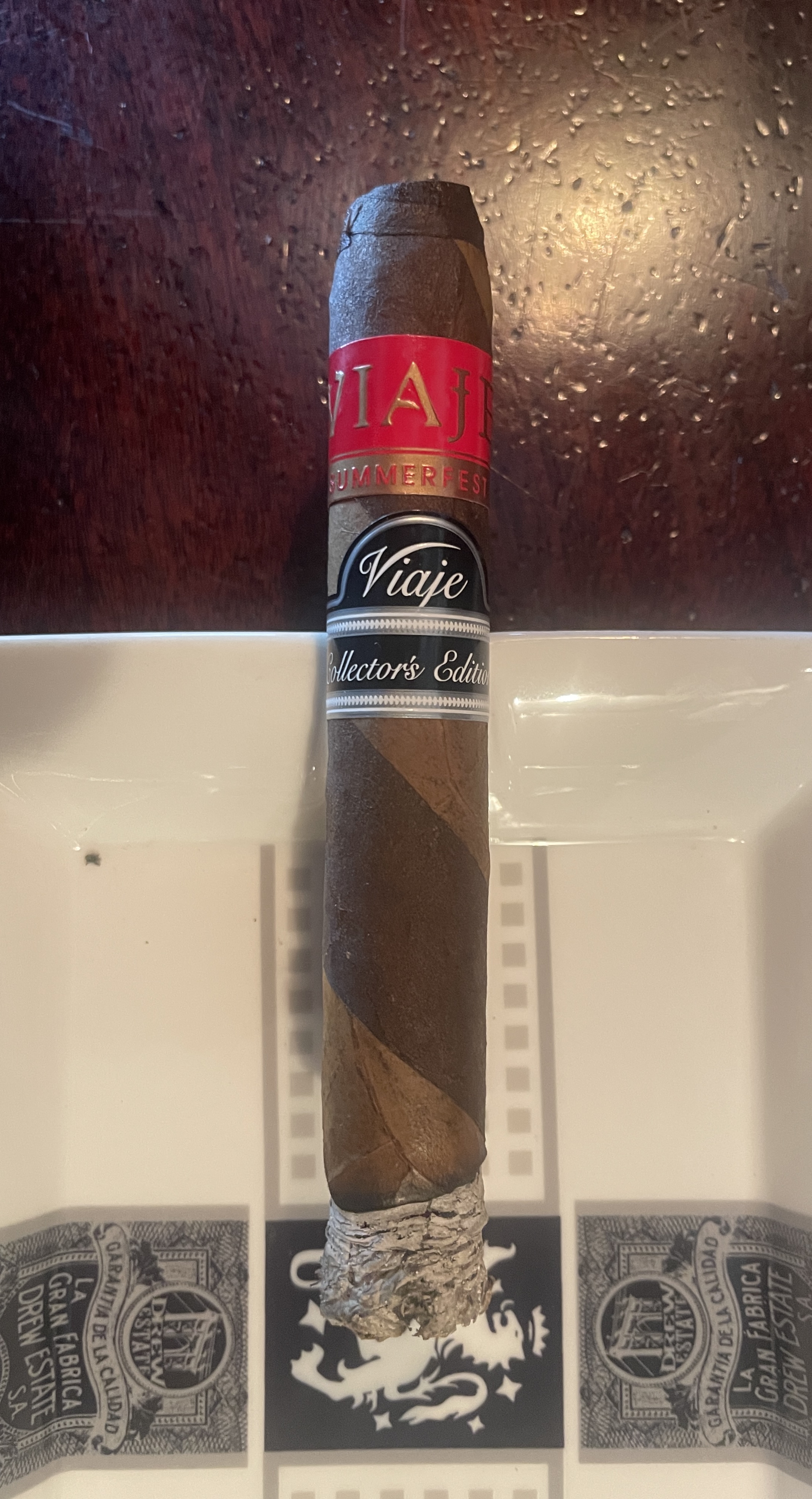 The Summerfest line received the 'Collector’s Edition' treatment in 2025, meaning the cigars were rolled in a single shape and blend—never to be offered again. The Viaje Summerfest Collector’s Edition Barber Pole (2025) was rolled in a 6¼" x 54 torpedo format, featuring Mexican maduro and Ecuadorian Connecticut-seed wrappers and a Nicaraguan interior blend—said to include six months of aging after being rolled.