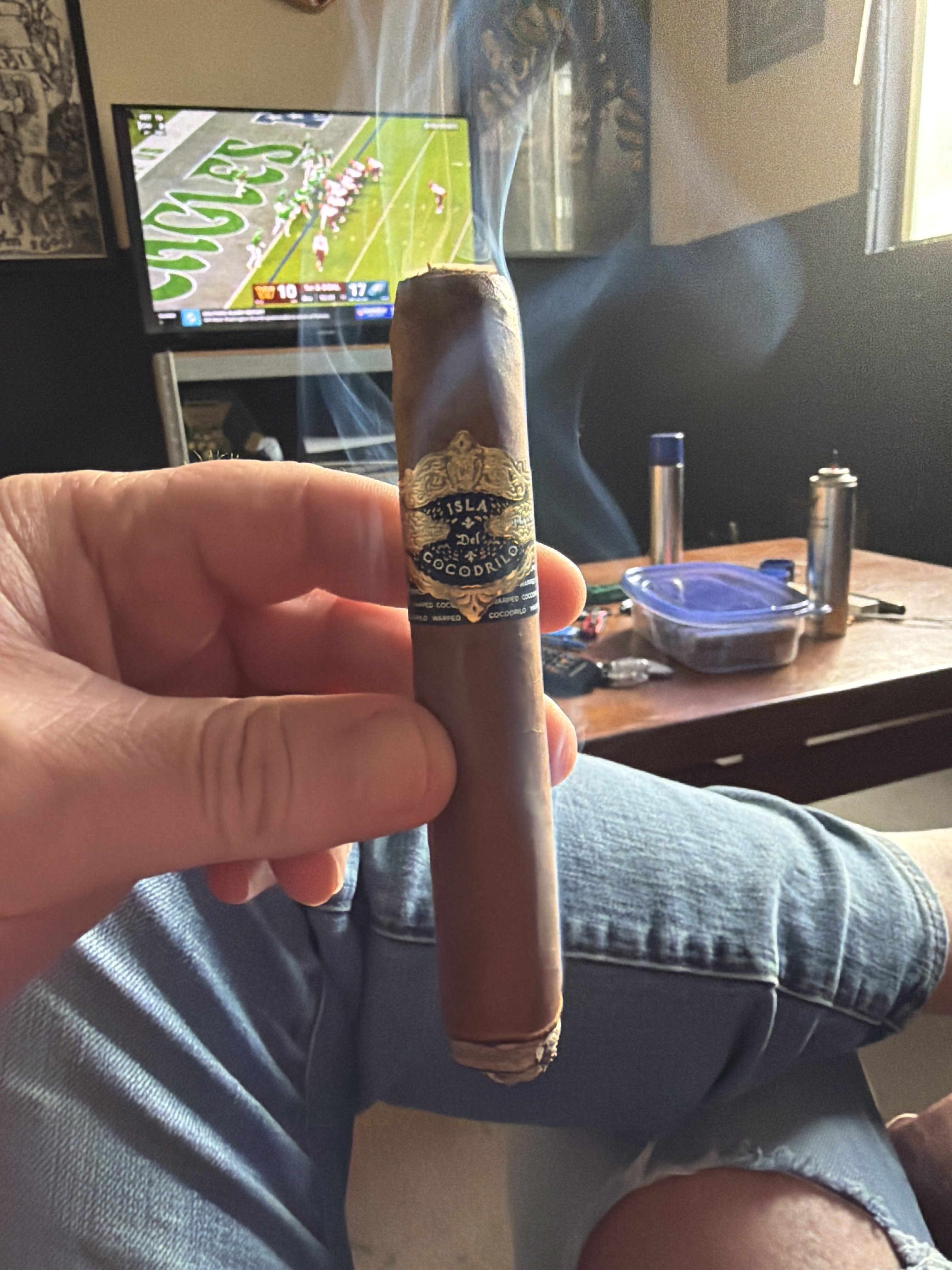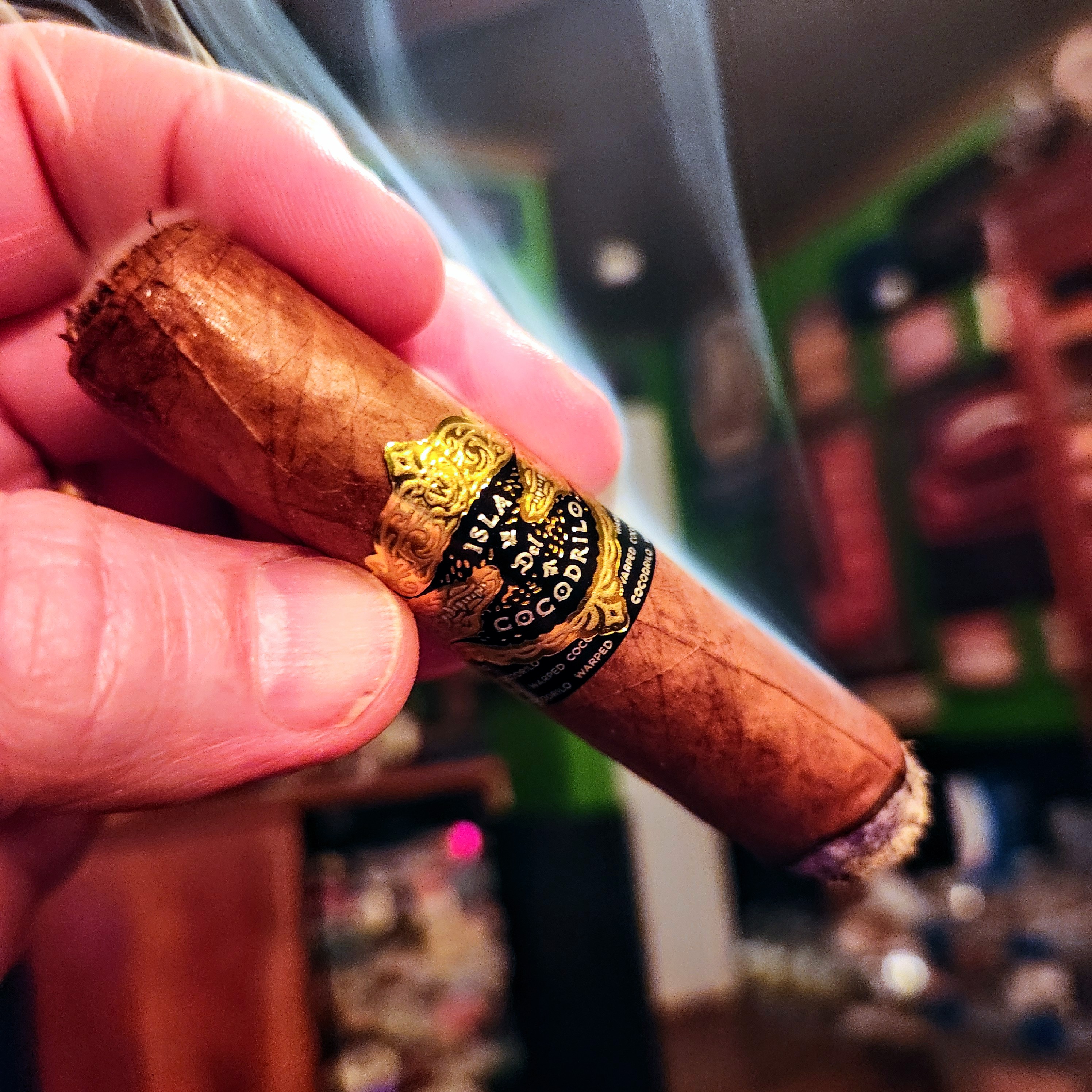 Warped Cigars' Isla del Cocodrilo is named for one of Cuba's nicknames, translating to mean Island of the Crocodile. This is due to the island's unique shape, which Warped has exaggerated in the cigar's graphic imagery. The cigar has been described as an unofficial Habano variant of the company's original La Colmena, as both feature the deslforado tobacco method, where the plant's flower is removed in order to direct added nutrients to the leaves. Isla del Cocodrilo features an Ecuadorian Habano wrapper, a double binder (Ecuadorian Habano 2000 and Brazilian Arapiraca), and all-Nicaraguan fillers.