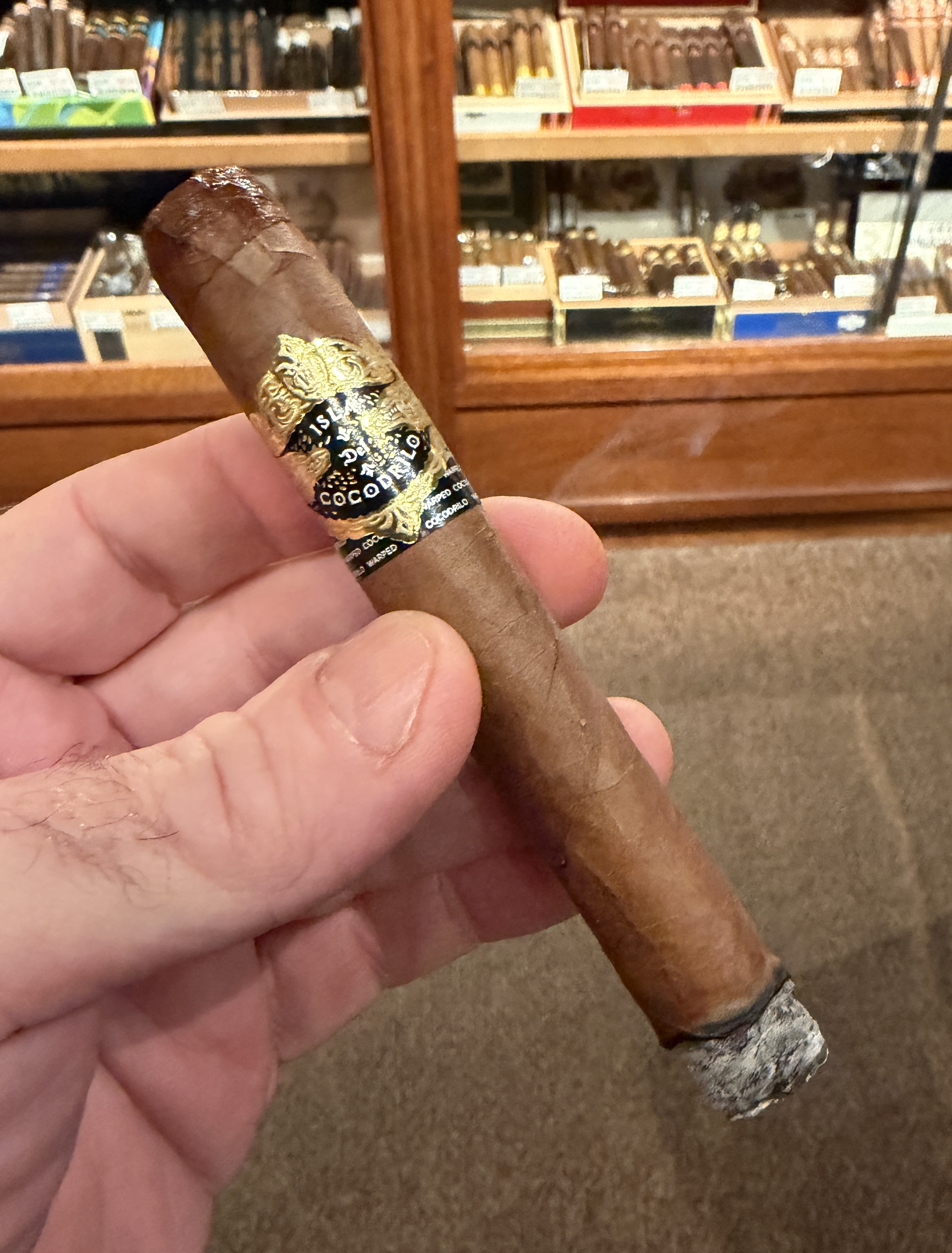 Warped Cigars' Isla del Cocodrilo is named for one of Cuba's nicknames, translating to mean Island of the Crocodile. This is due to the island's unique shape, which Warped has exaggerated in the cigar's graphic imagery. The cigar has been described as an unofficial Habano variant of the company's original La Colmena, as both feature the deslforado tobacco method, where the plant's flower is removed in order to direct added nutrients to the leaves. Isla del Cocodrilo features an Ecuadorian Habano wrapper, a double binder (Ecuadorian Habano 2000 and Brazilian Arapiraca), and all-Nicaraguan fillers.