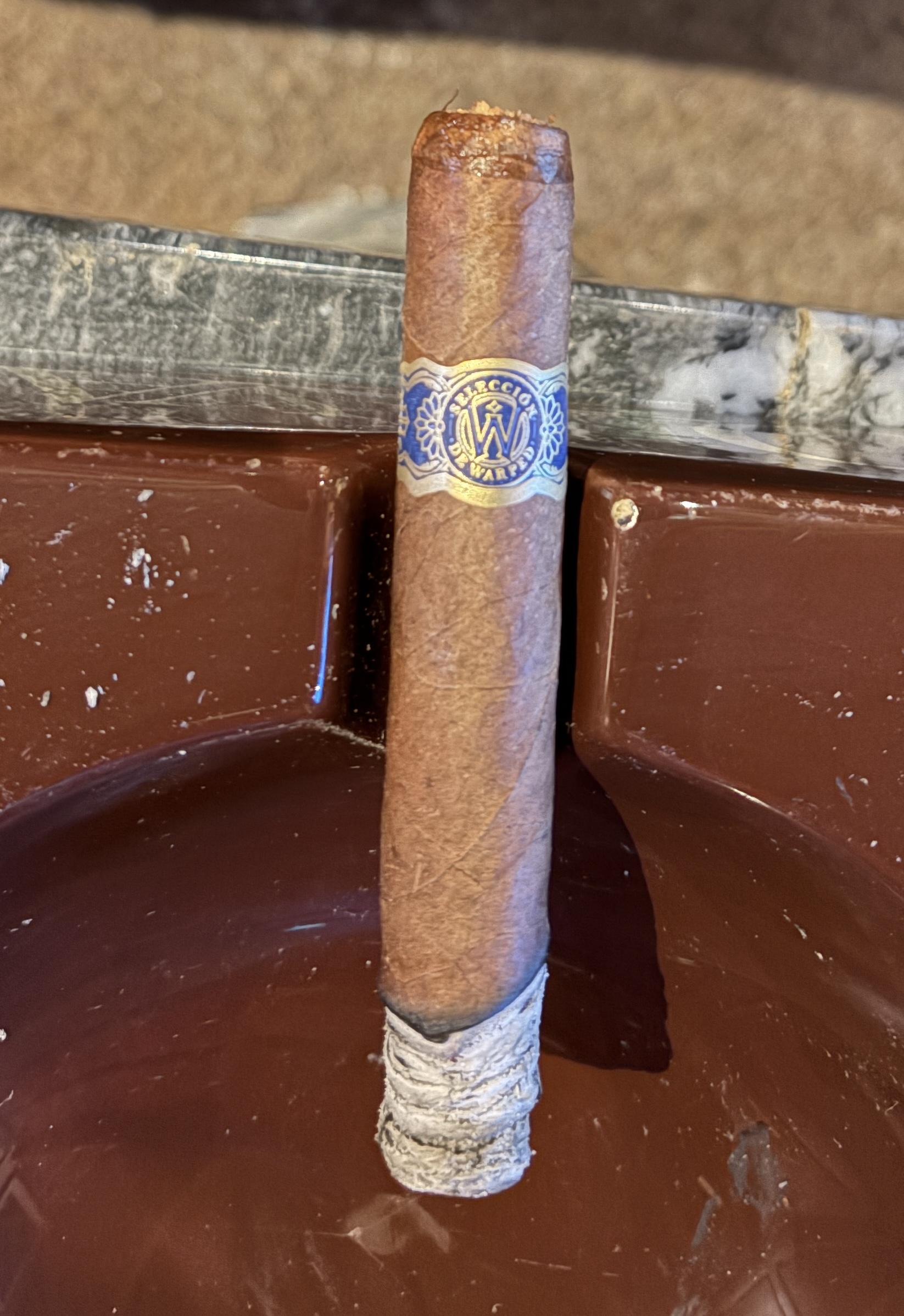 The Miami Maduro 475 cigar was an exclusive collaboration between Warped and Luxury Cigar Club, being crafted out of the famed El Titan de Bronze factory in a single 5" x 47 Petite Churchill format. The blend was said to feature a modified version of the Don Reynaldo core recipe, including Nicaraguan fillers, an Ecuadorian binder, and being topped with an Ecuadorian maduro oscuro wrapper.