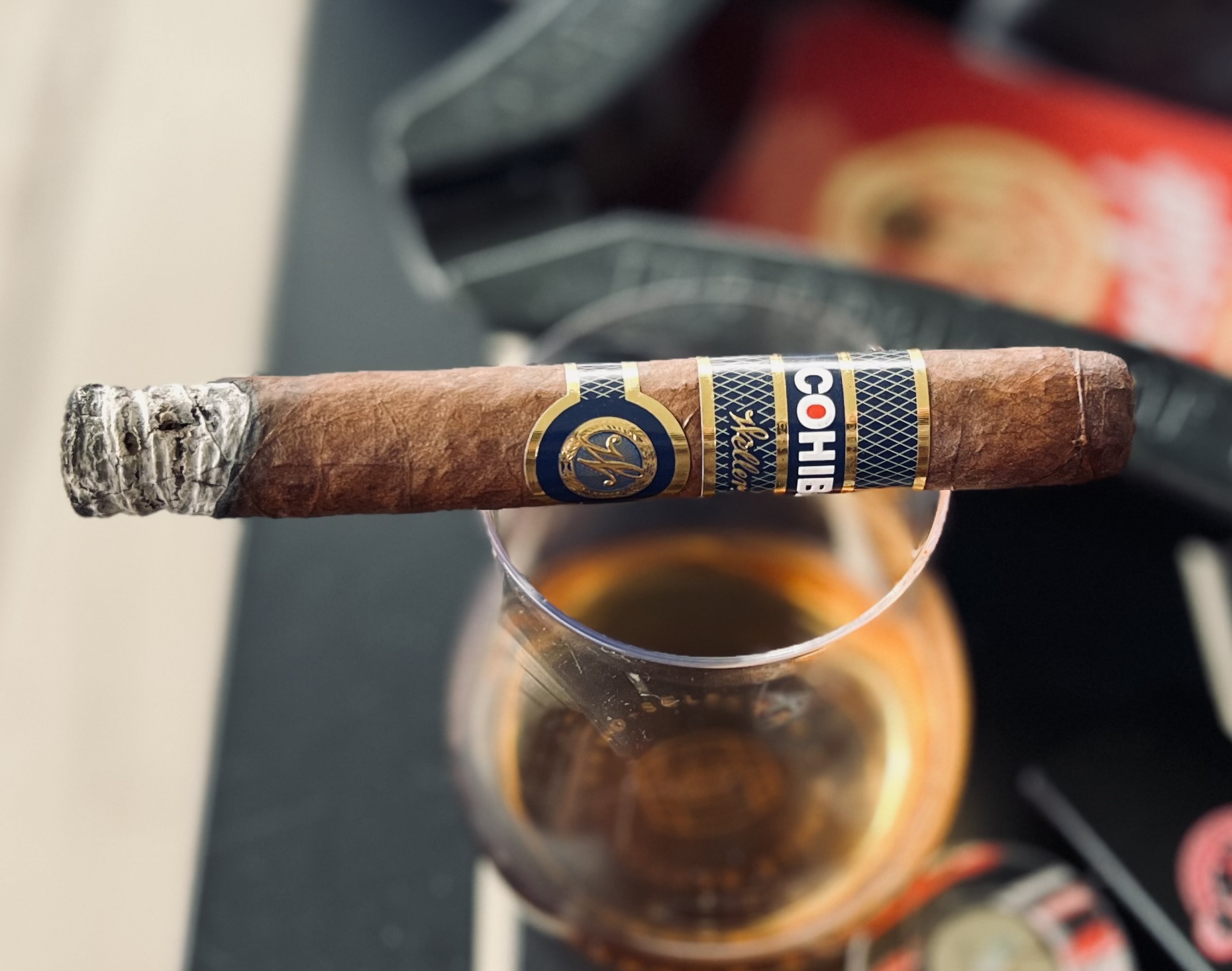 The Weller by Cohiba (2024) marks the fourth release in Scandinavian Tobacco Group's collaboration with Sazerac Company and their fan-favorite Weller bourbon. Over the years, the cigars themselves have become more involved with the bourbon, and the 2024 edition continues this trend, specifying the Weller bourbon barrels that were used to age the cigar's tobacco for the first time. The cigar ties into the highly sought-after Weller Full Proof bourbon, featuring a similar blue design and tobaccos (Connecticut Broadleaf used as the binder) that were aged in spent bourbon barrels that formerly contained Weller Full Proof. The remainder of the blend features an Ecuadorian Sumatra wrapper and fillers from Honduras, Nicaragua, and the Dominican Republic.