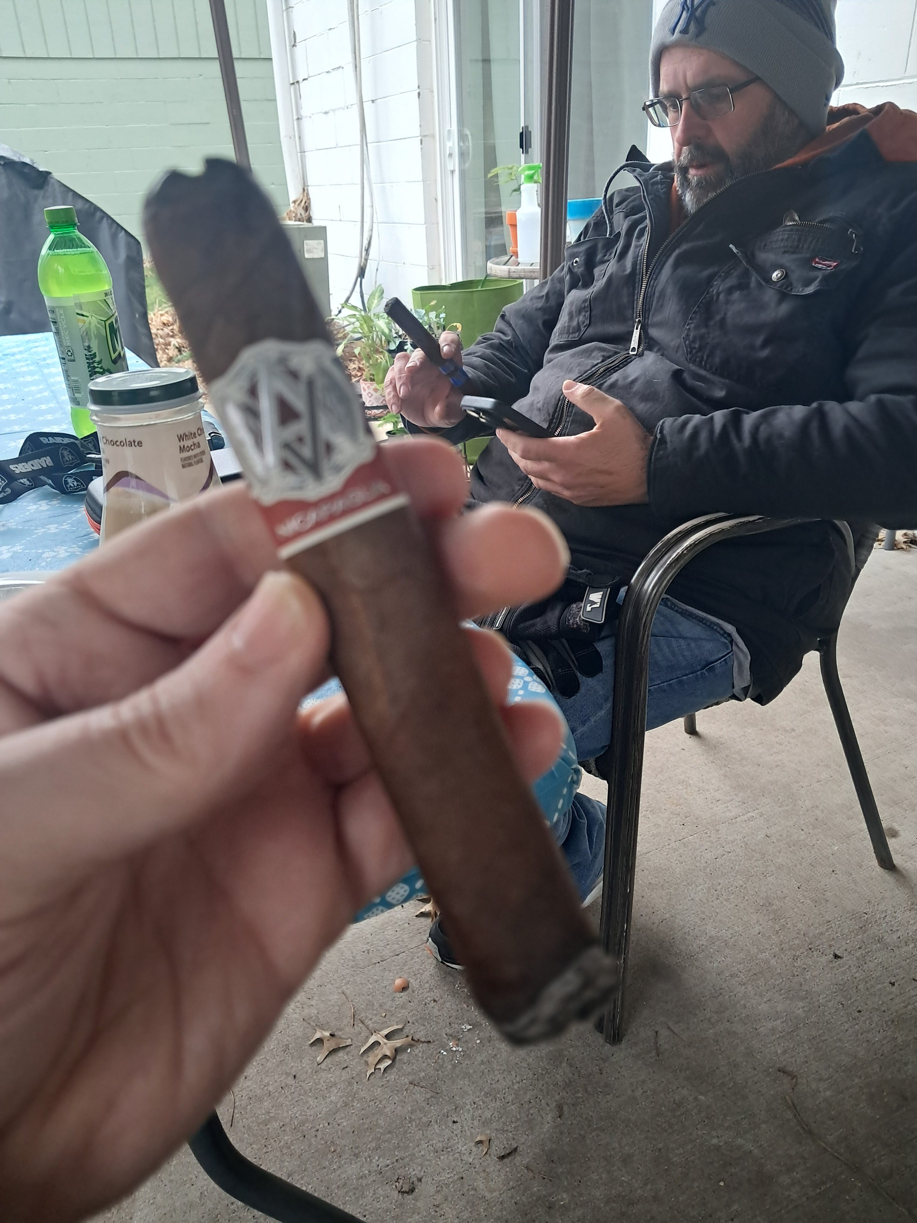 Steven is smoking AVO Syncro Nicaragua. Rated with thumbs up!