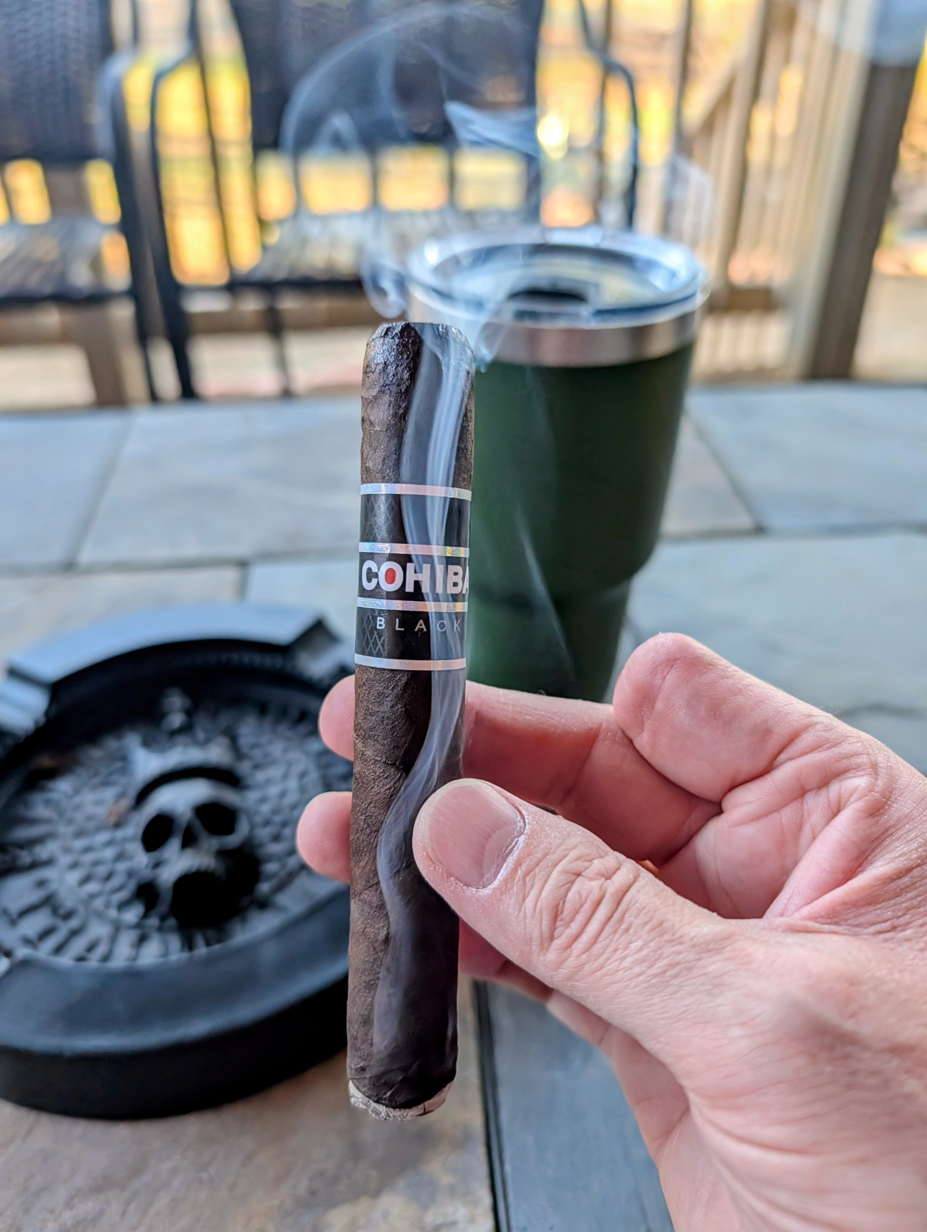 Clint Cook is smoking Cohiba Black. Rated with thumbs up!