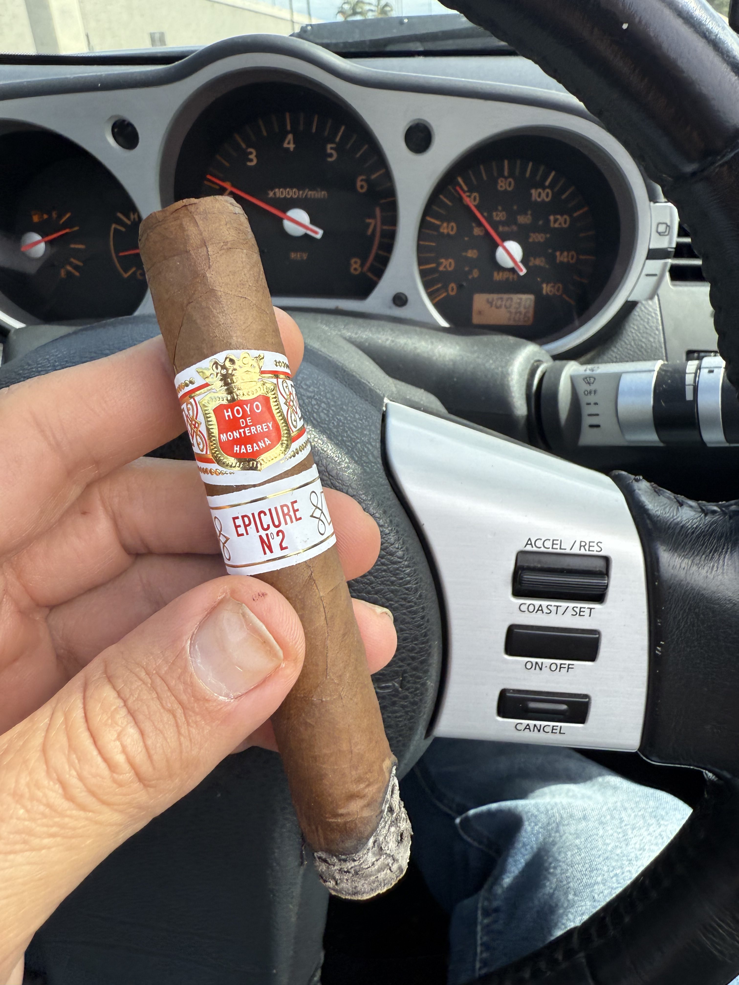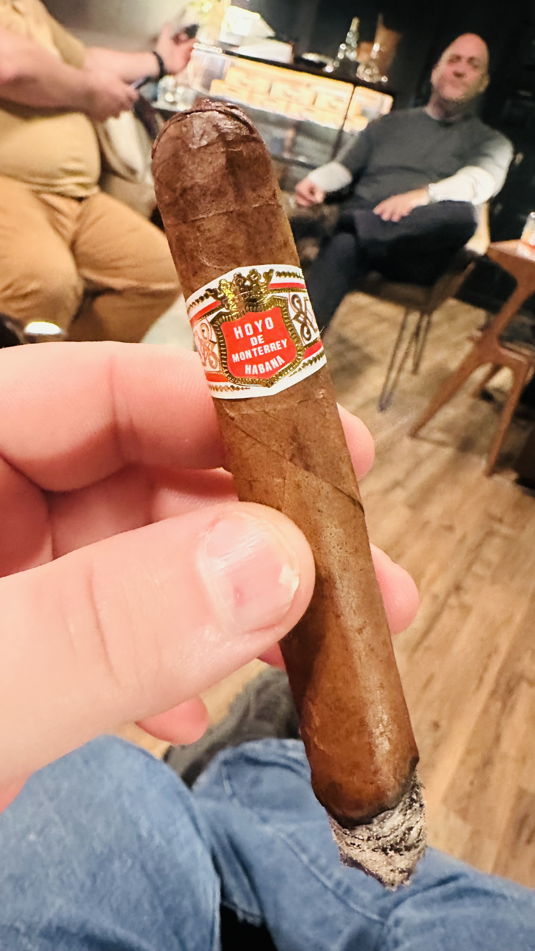 Josh is smoking Hoyo de Monterrey.