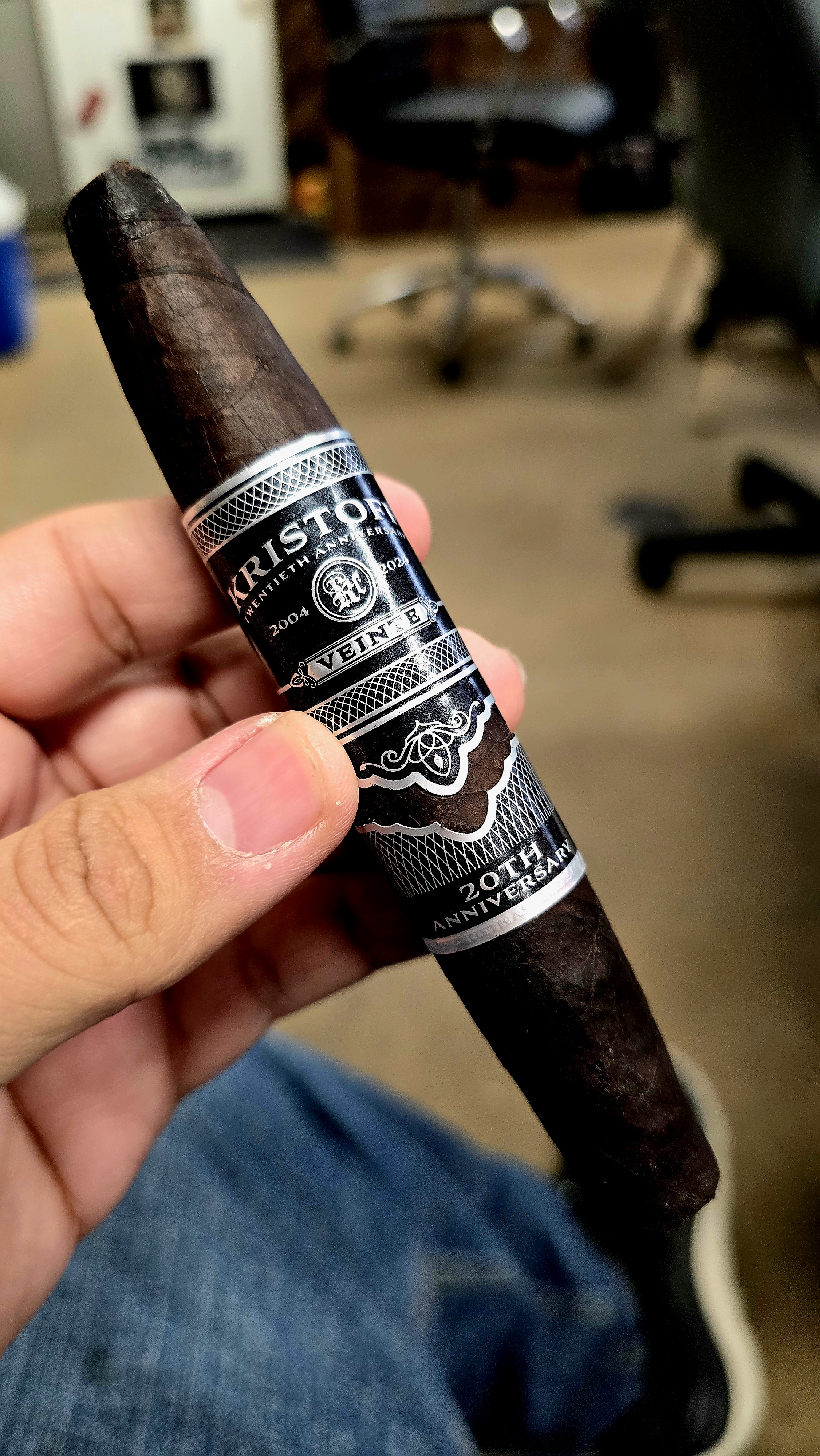 Johnny"MexGeek" Urias is smoking Kristoff Veinte 20th Anniversary. Rated with thumbs up!