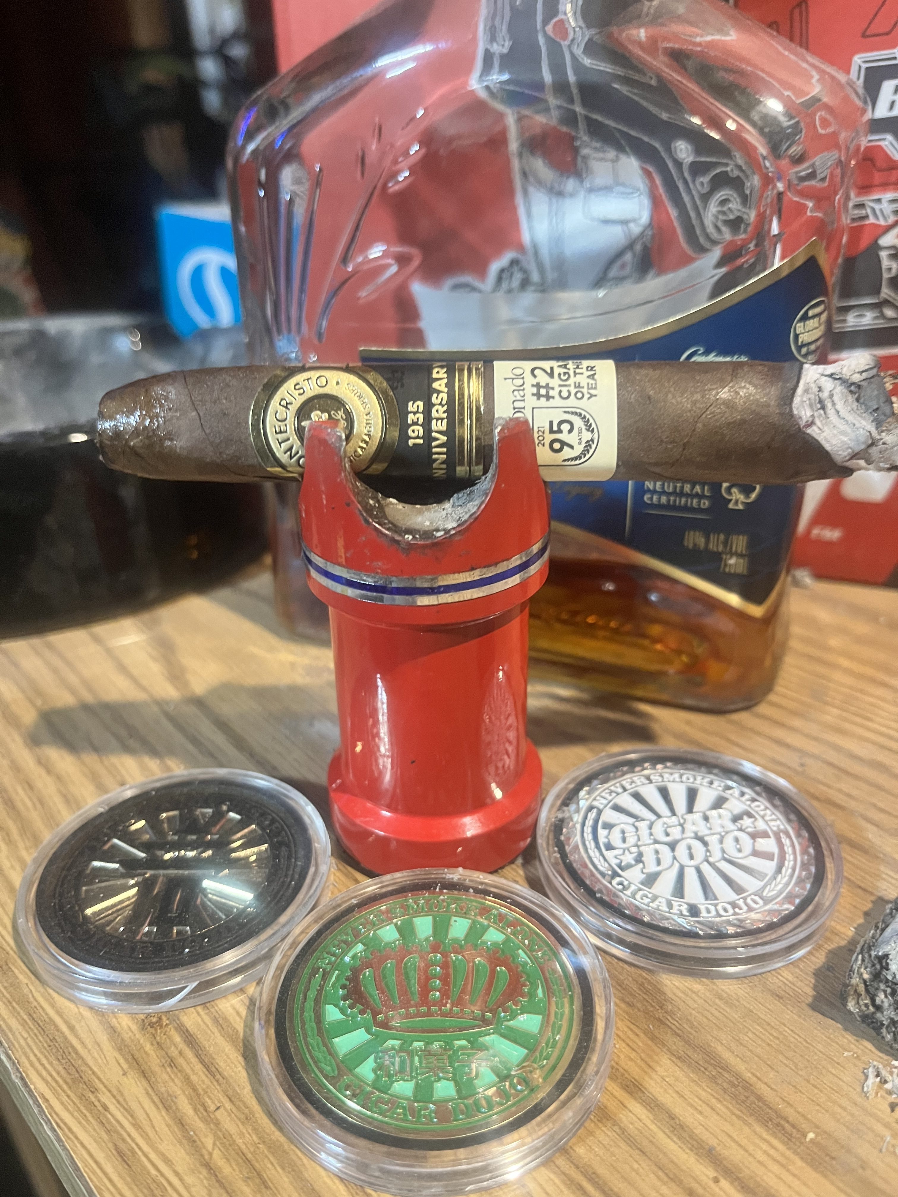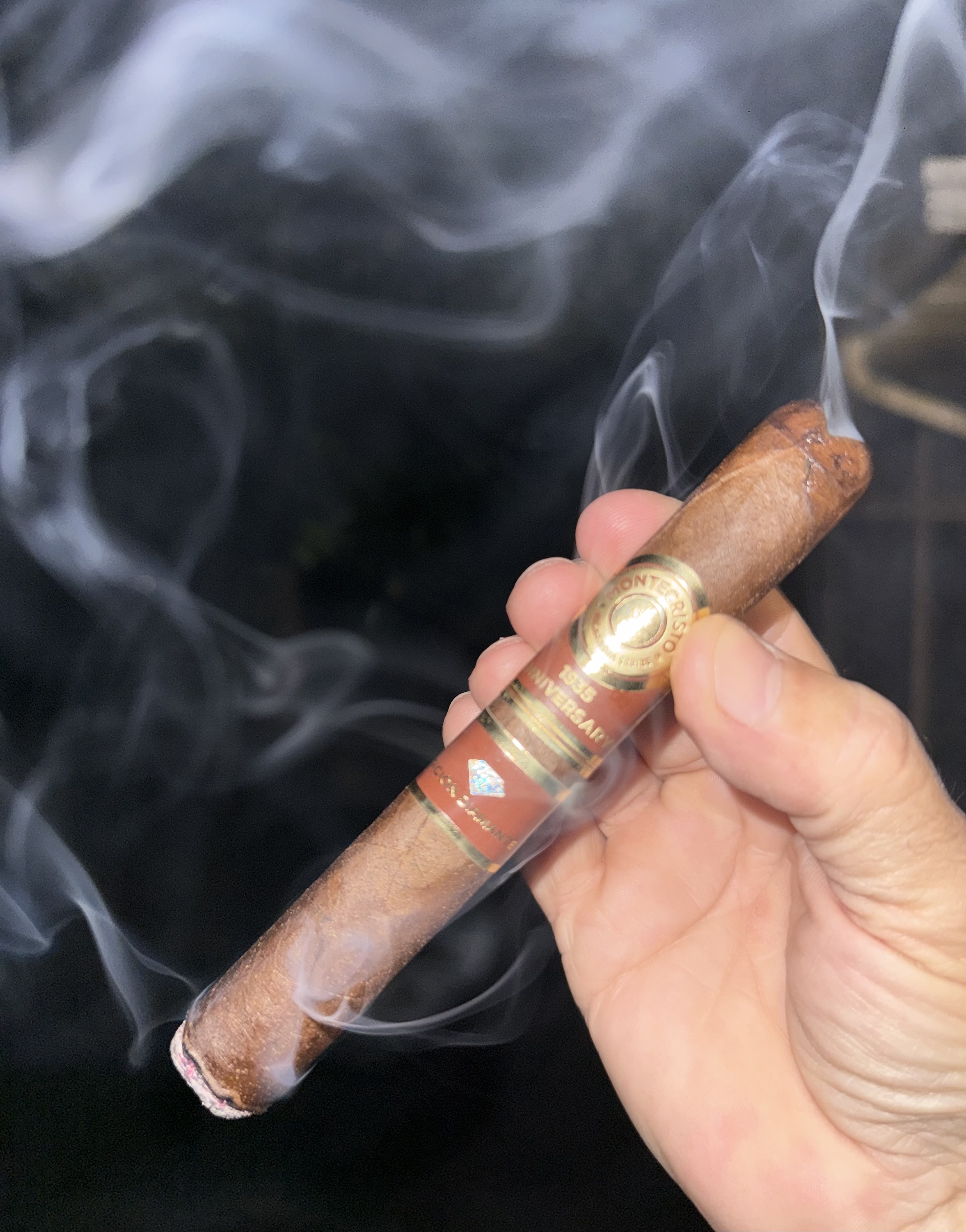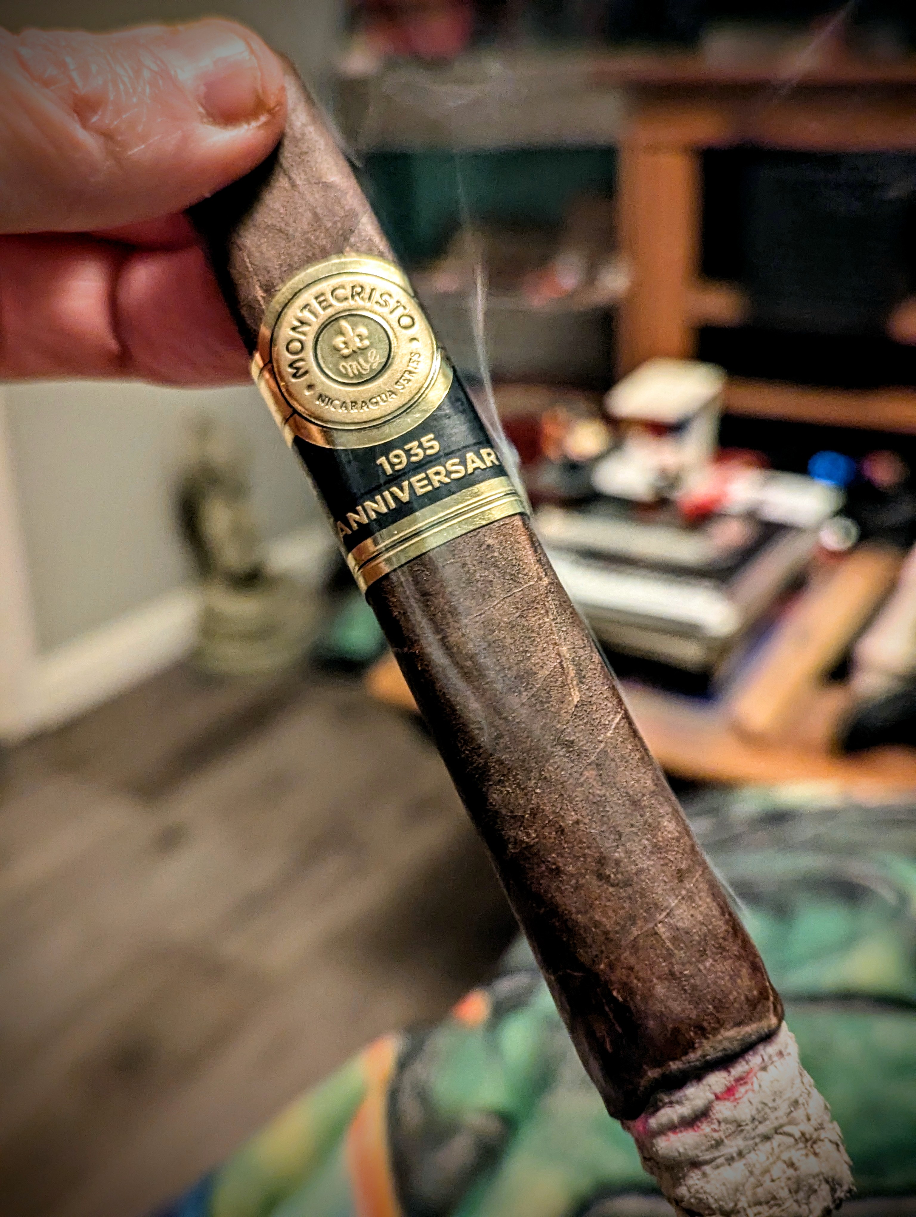 mbarnes is smoking Montecristo 1935 Anniversary Nicaragua. Rated with thumbs up!
