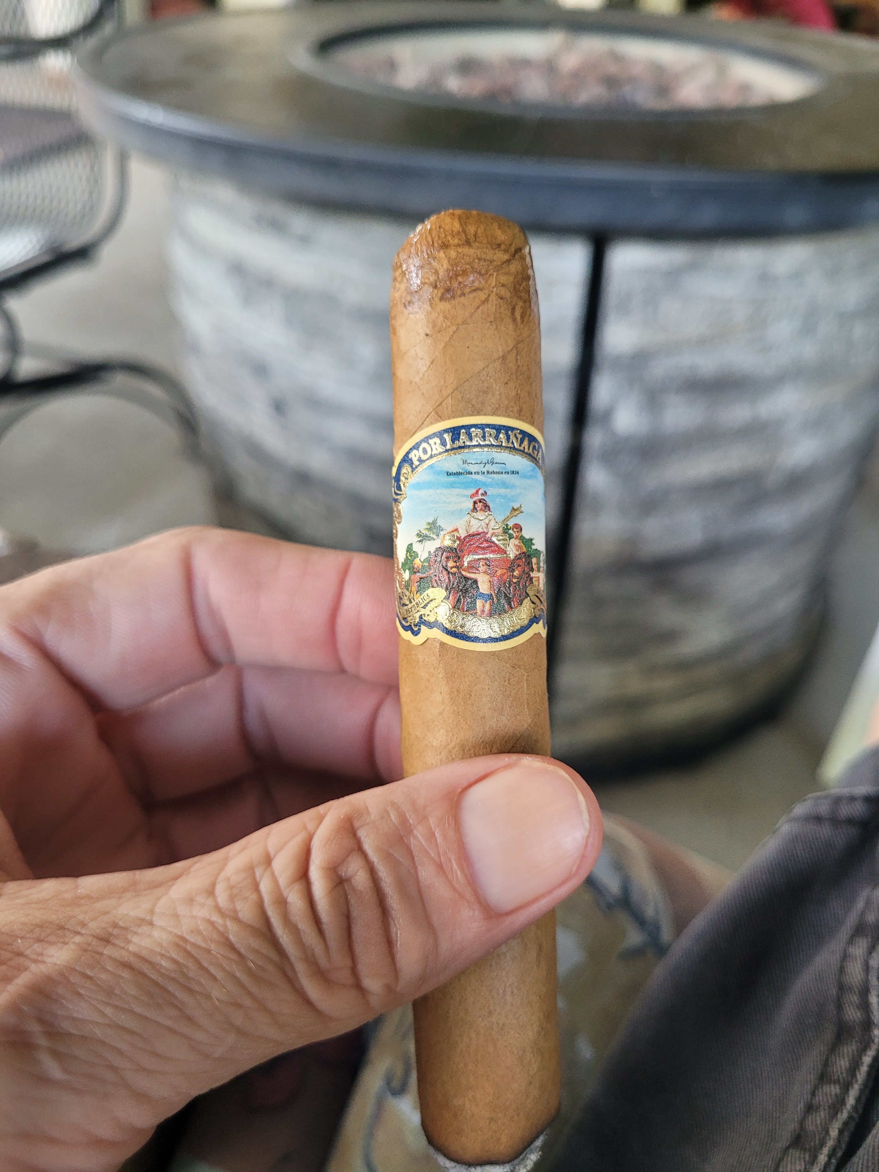 Joe Machado🏴☠️ is smoking Por Larrañaga. Rated with thumbs up!