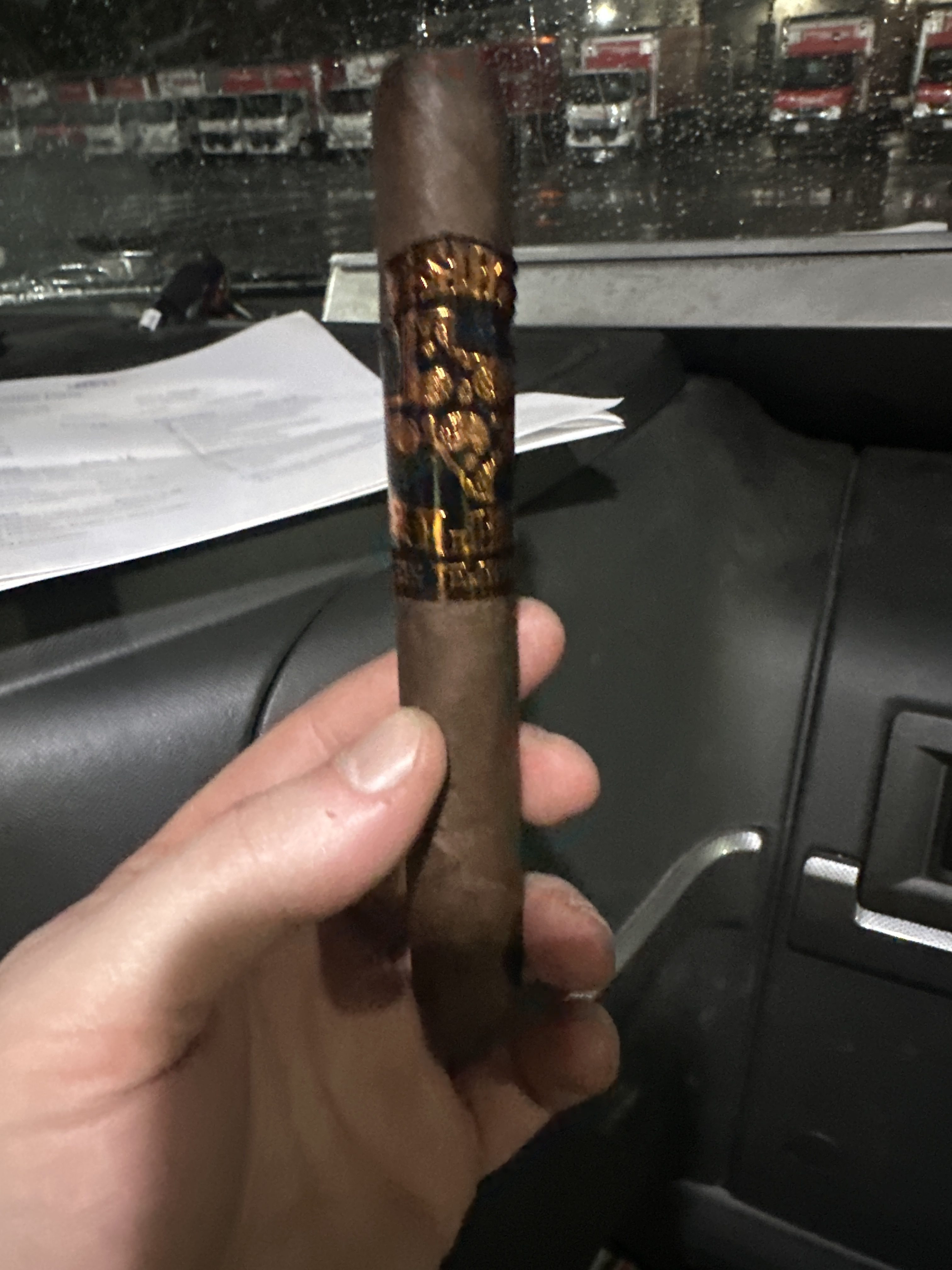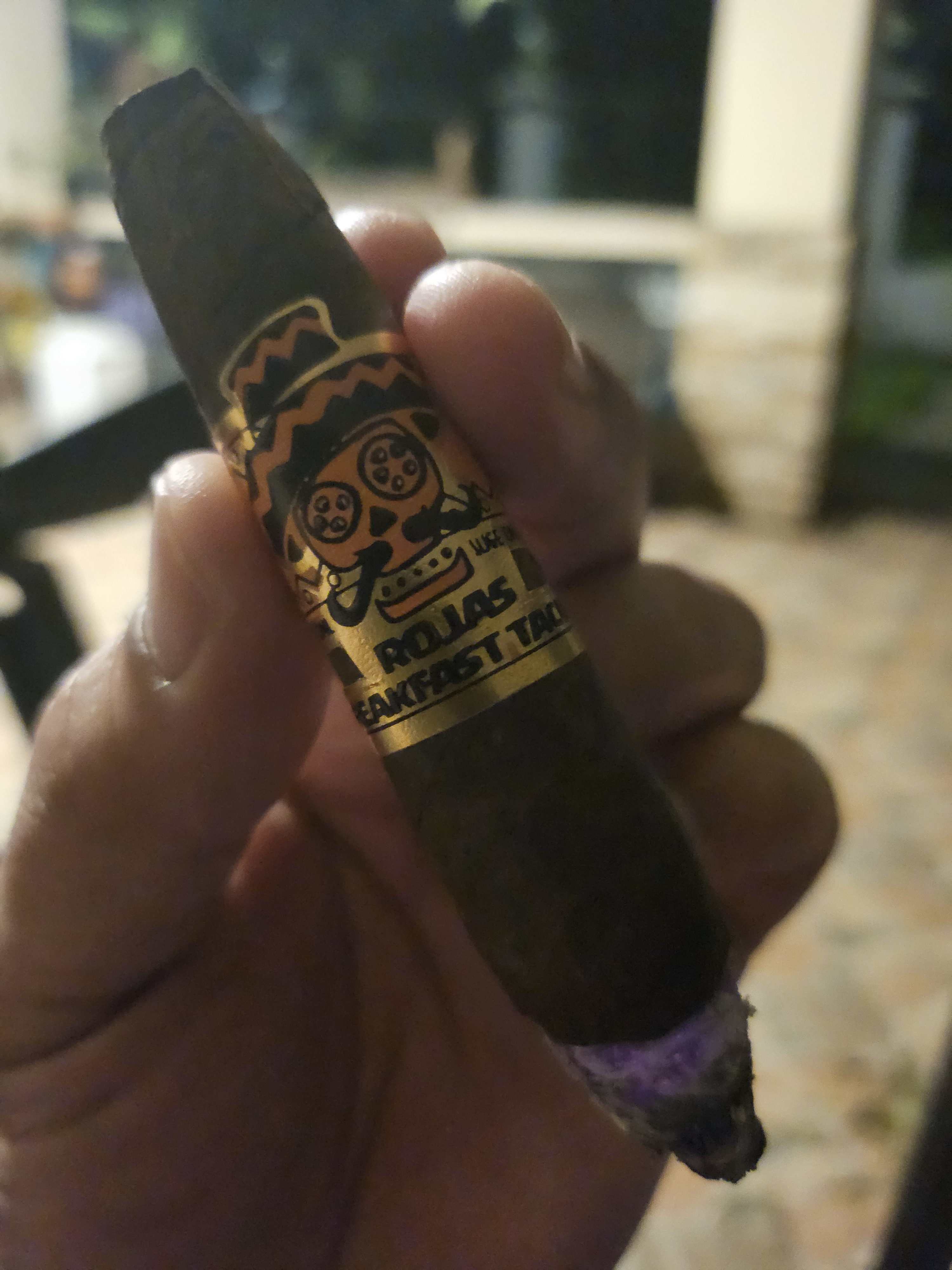 Gener Lumbre is smoking Breakfast Tacos Maduro. Rated with thumbs up!