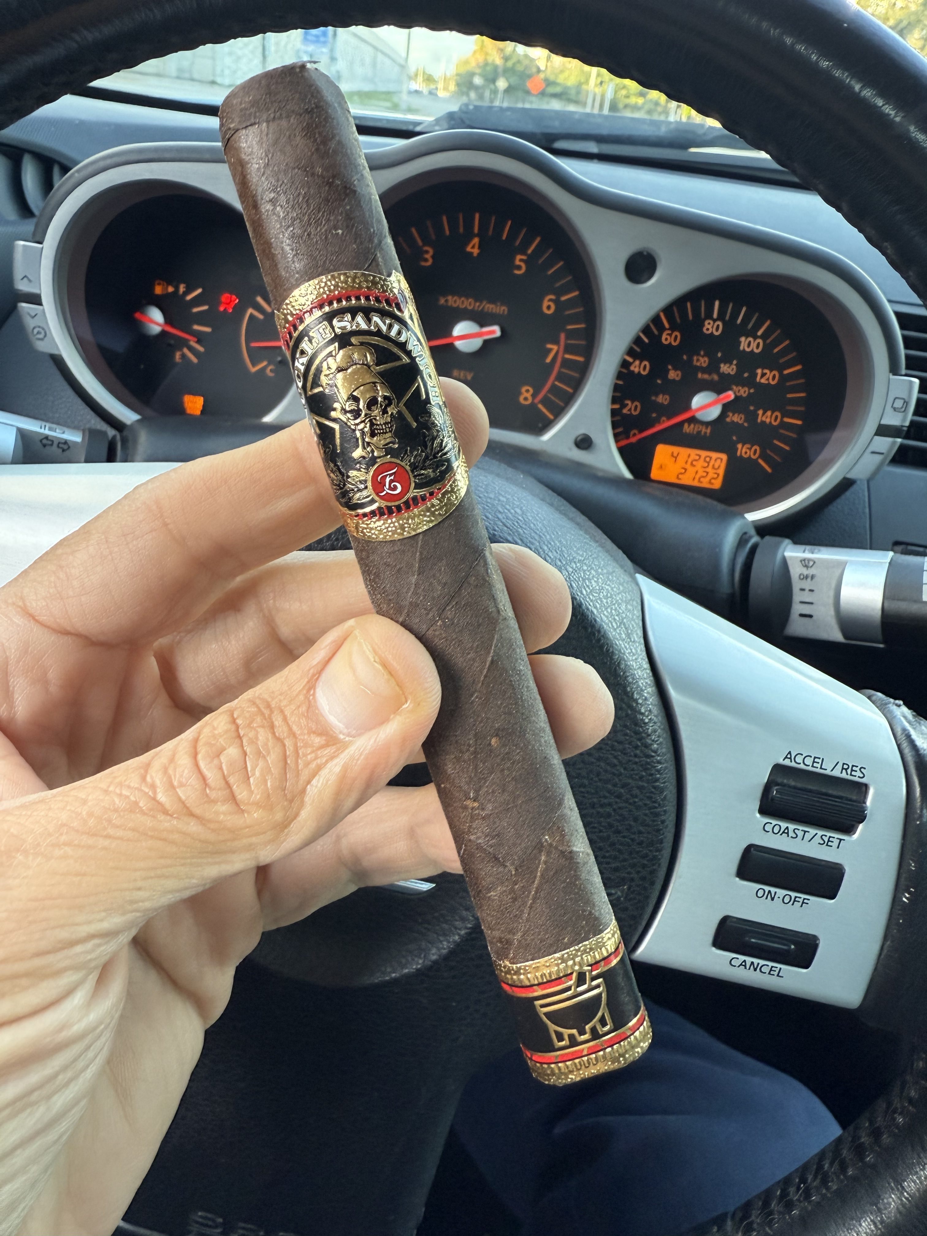 Adam Geller is smoking Knuckle Sandwich Molcajete. Rated with thumbs up!