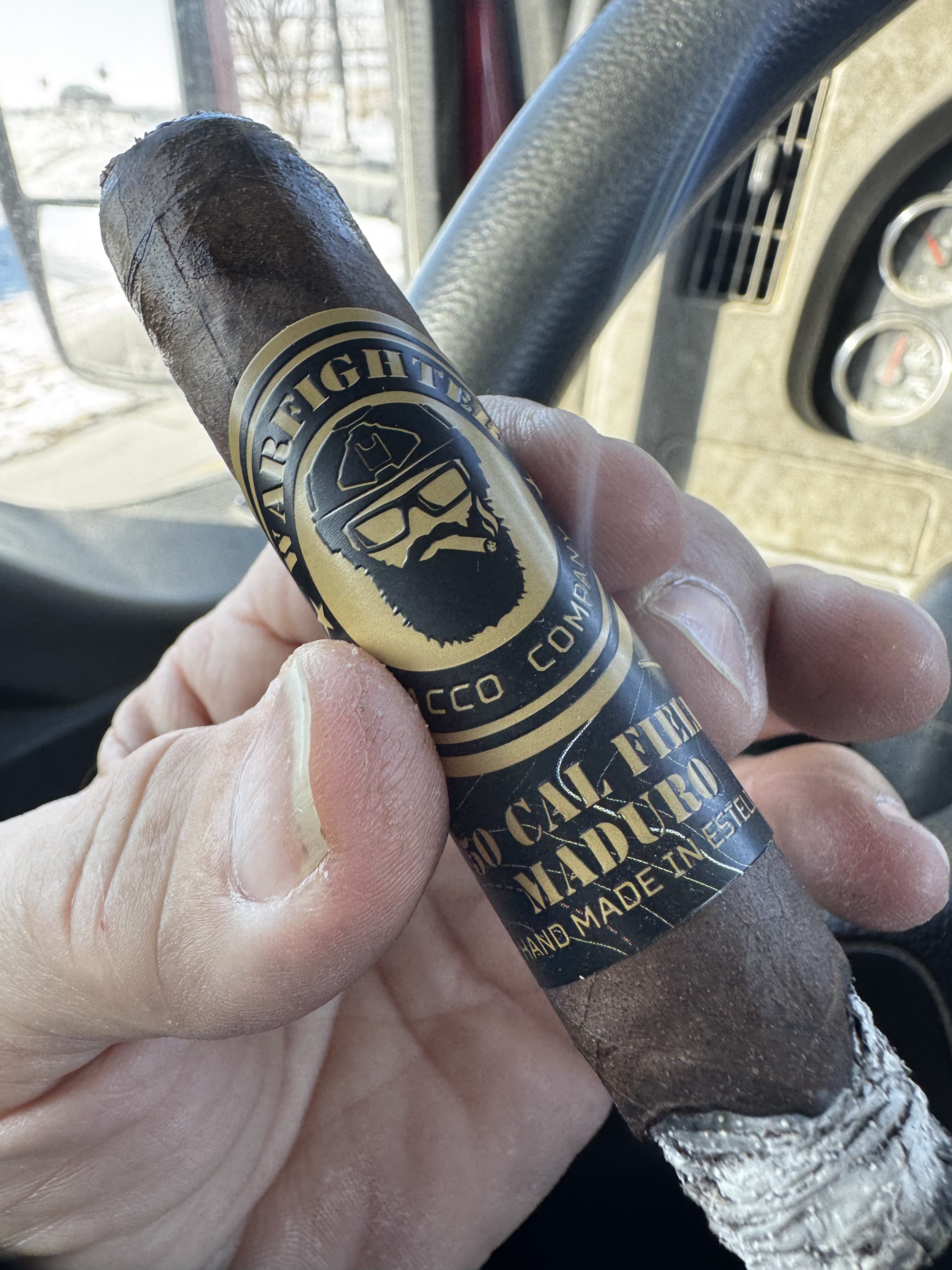 Chase is smoking .50 Cal Garrison Oscuro Maduro. Rated with thumbs up!