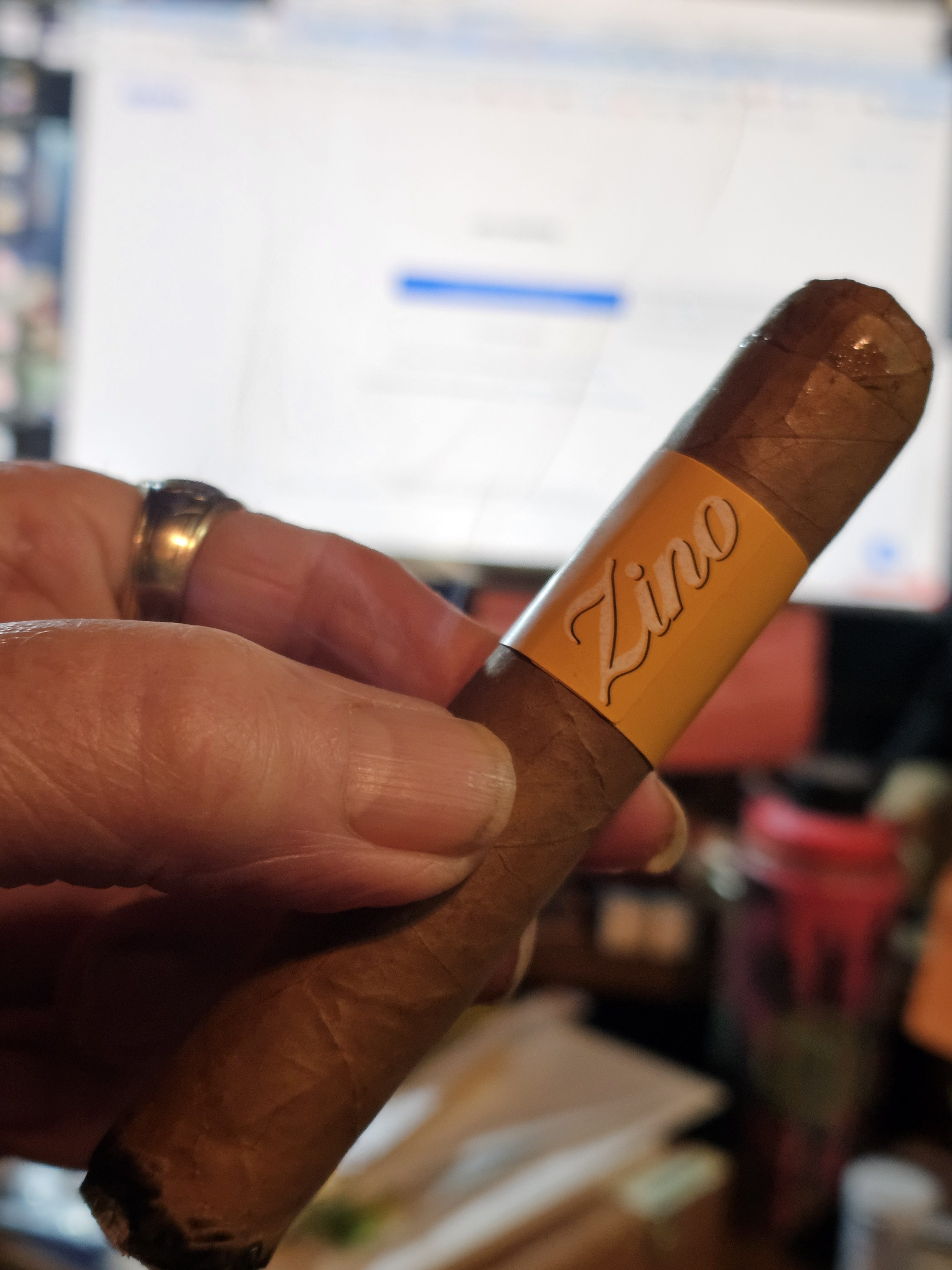 sheldon pangburn is smoking Zino Nicaragua. Rated with thumbs up!