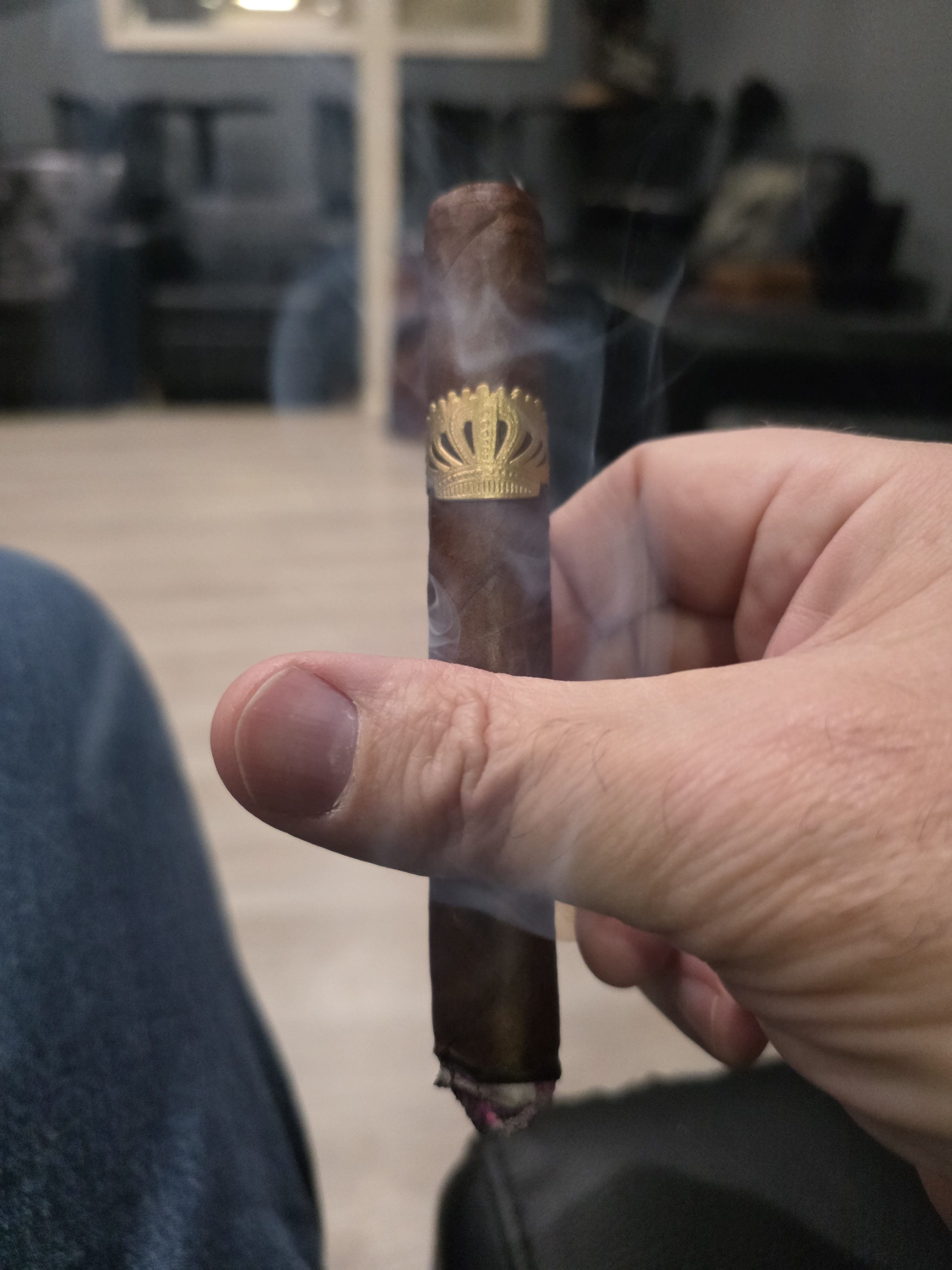 First smoke in awhile. Had a perfect burn. A tighter draw that I like. Flavor was good but didn’t change much from a leathery/espresso flavor.